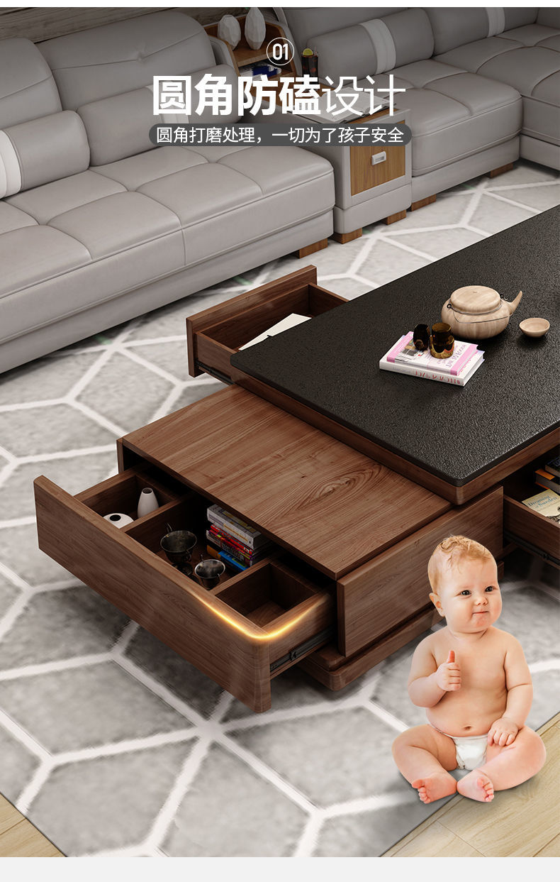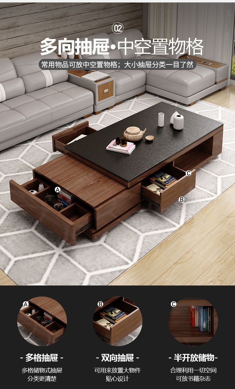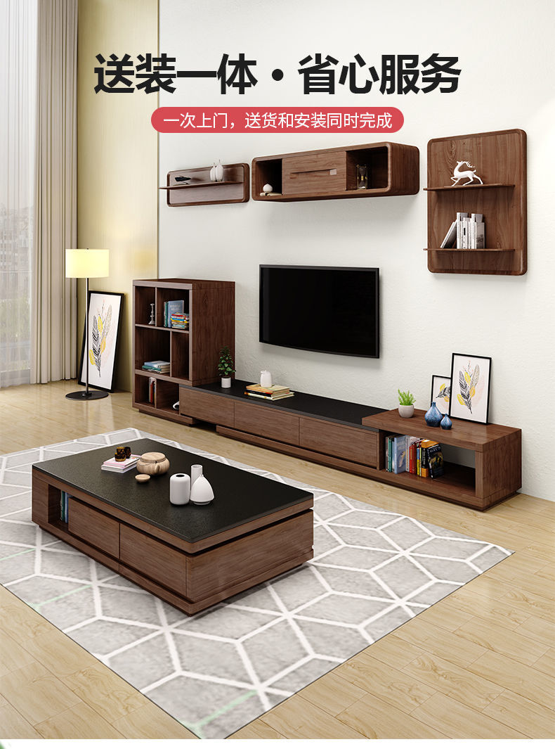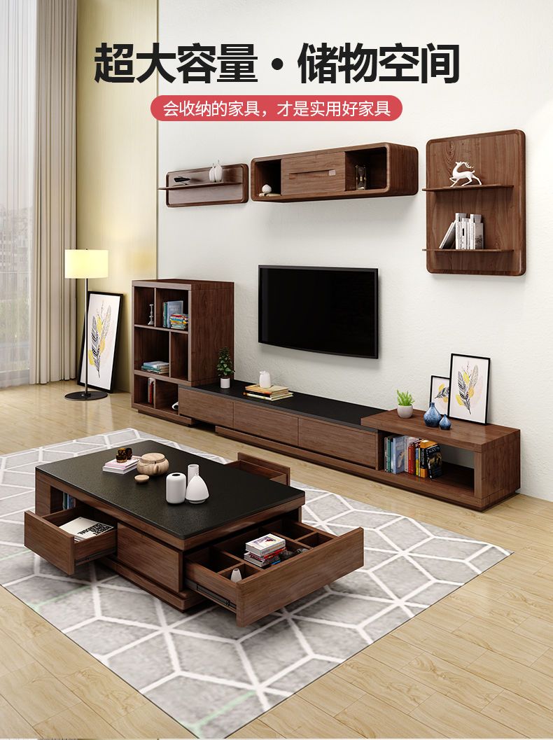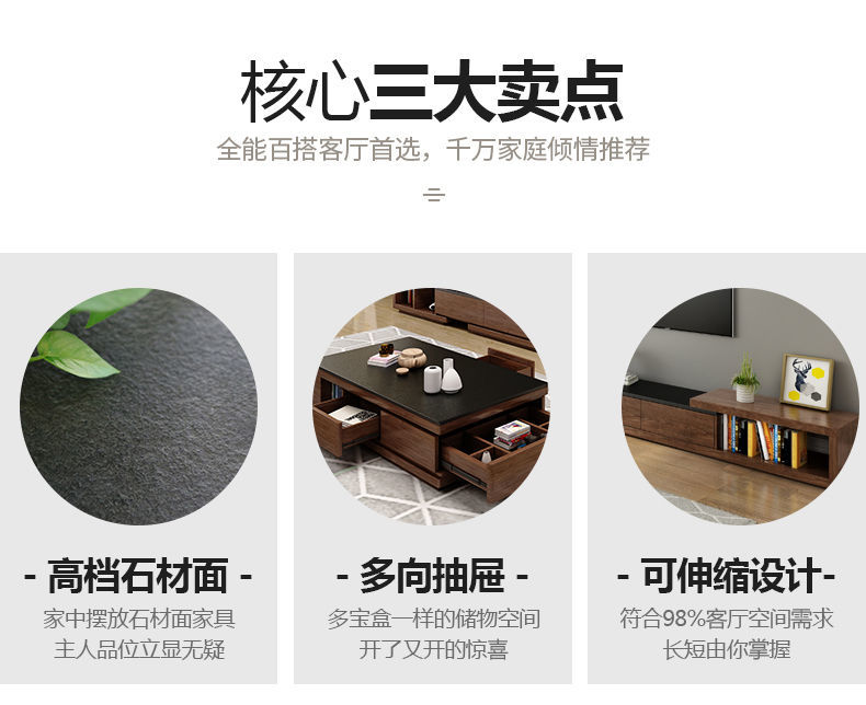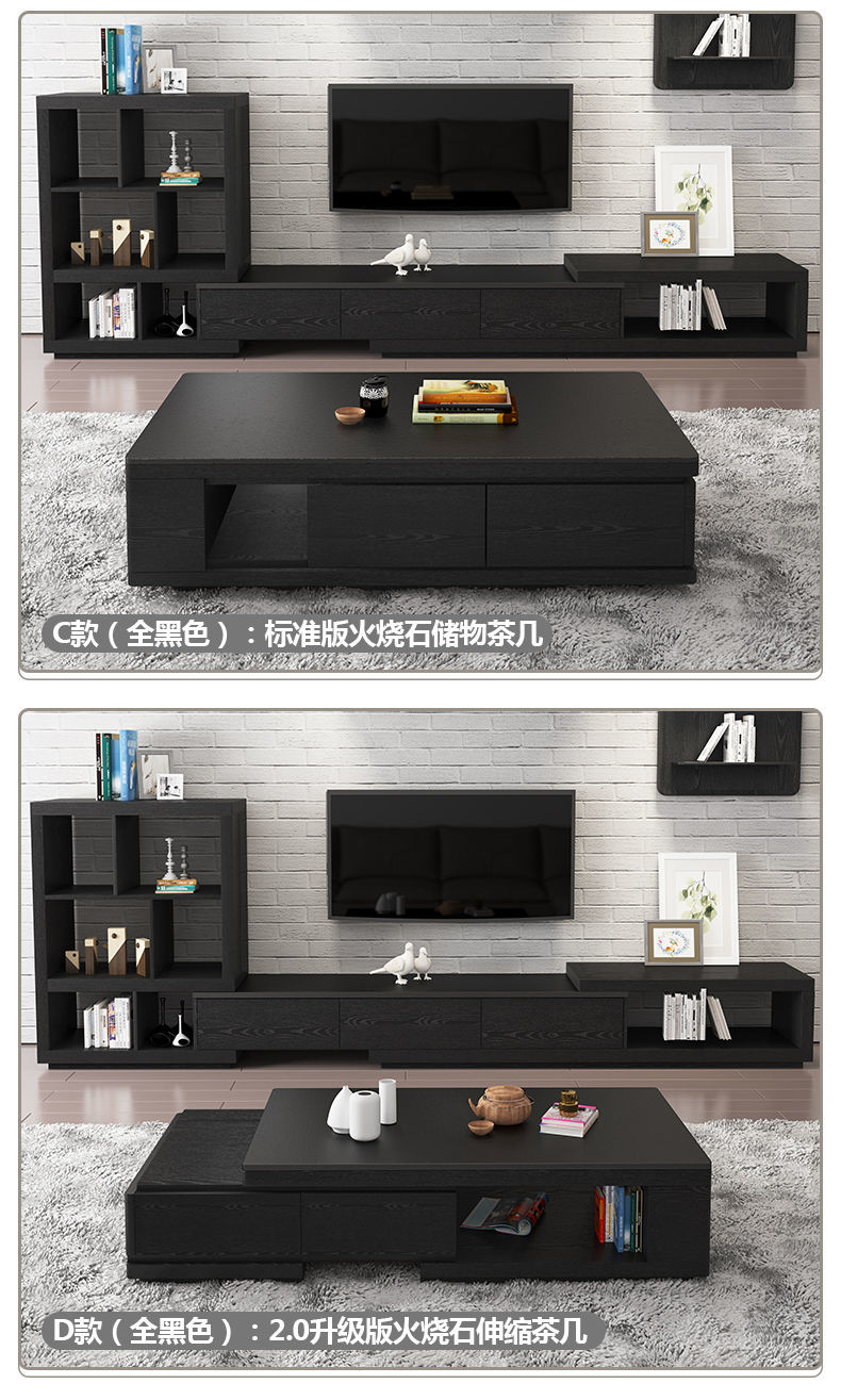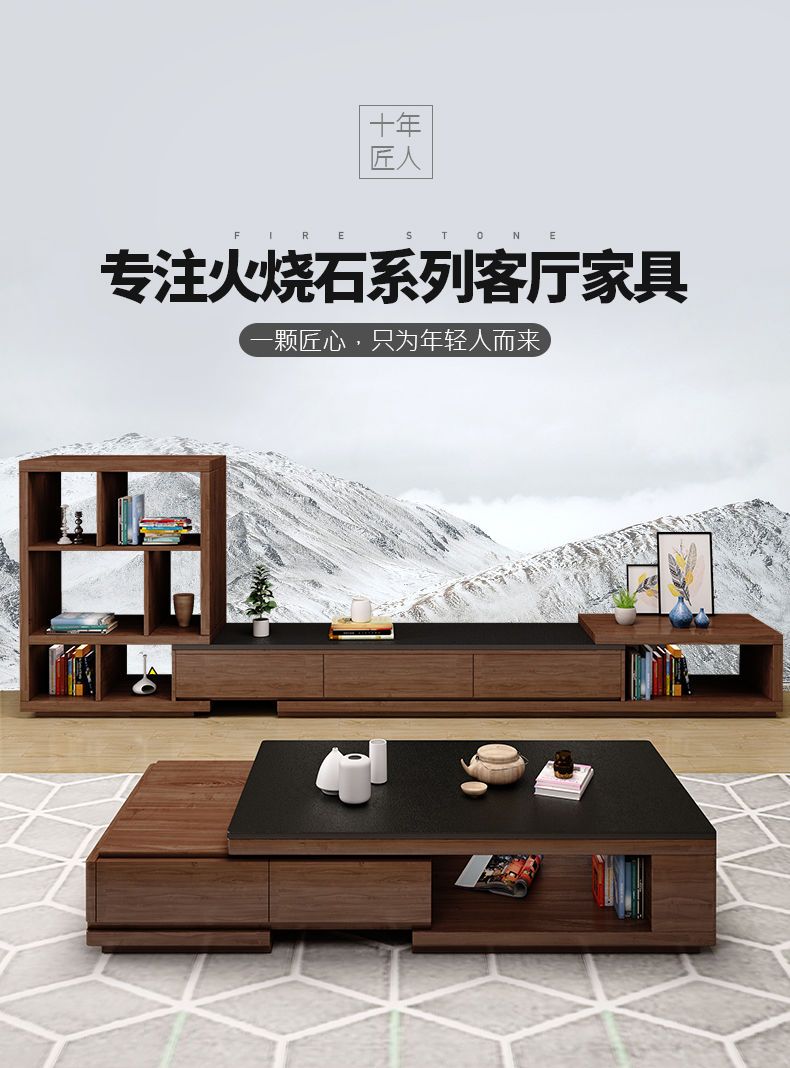 北欧火烧石茶几电视柜组合现代简约小户型茶几桌家用客厅岩板家具