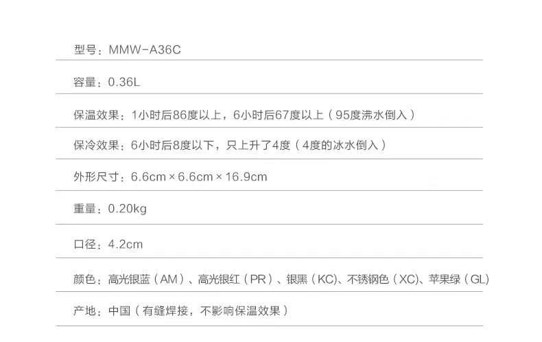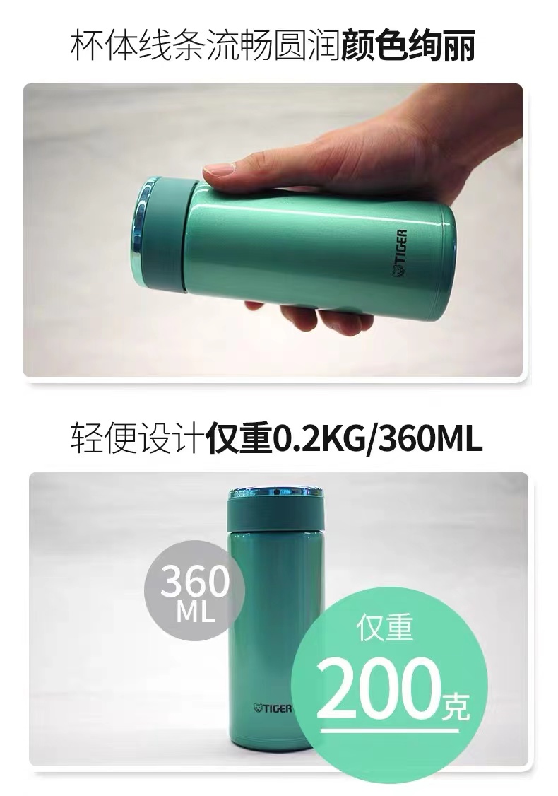 tiger虎牌保温杯MMW-A36C直身水杯子304不锈钢男士女士360ml新色