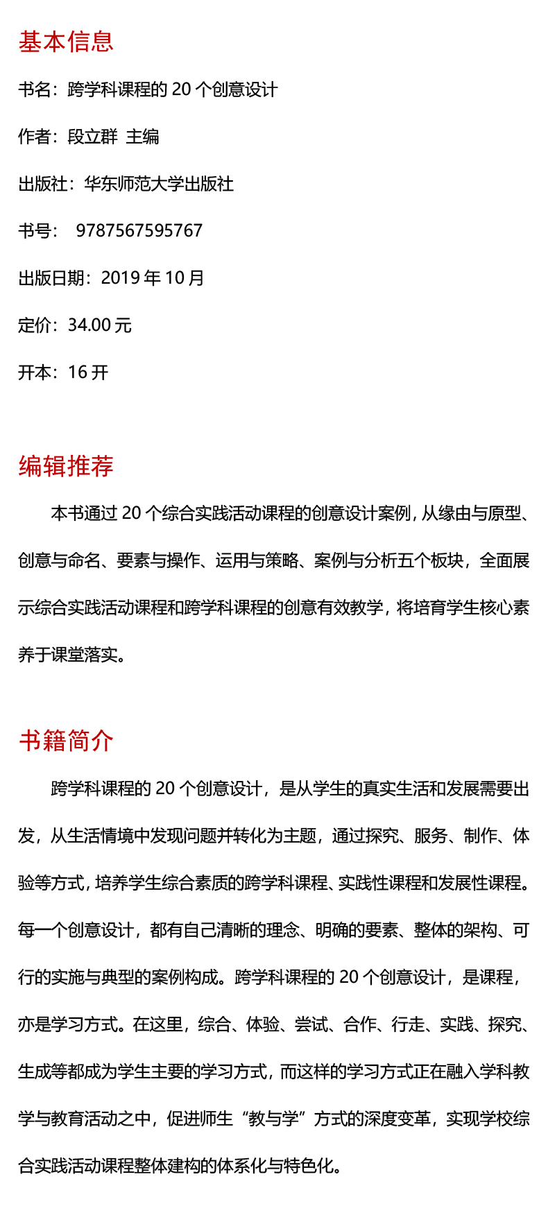 跨学科课程的20个创意设计 义务教育阶段综合实践活动课程建设 跨学科课程建设