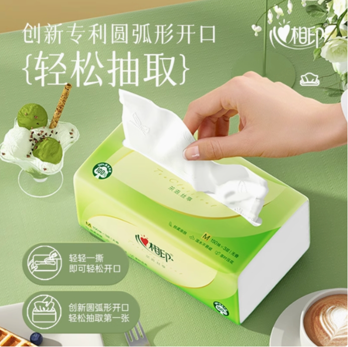 心相印茶语M码3层150抽抽纸 塑装面巾餐巾纸 3包/提