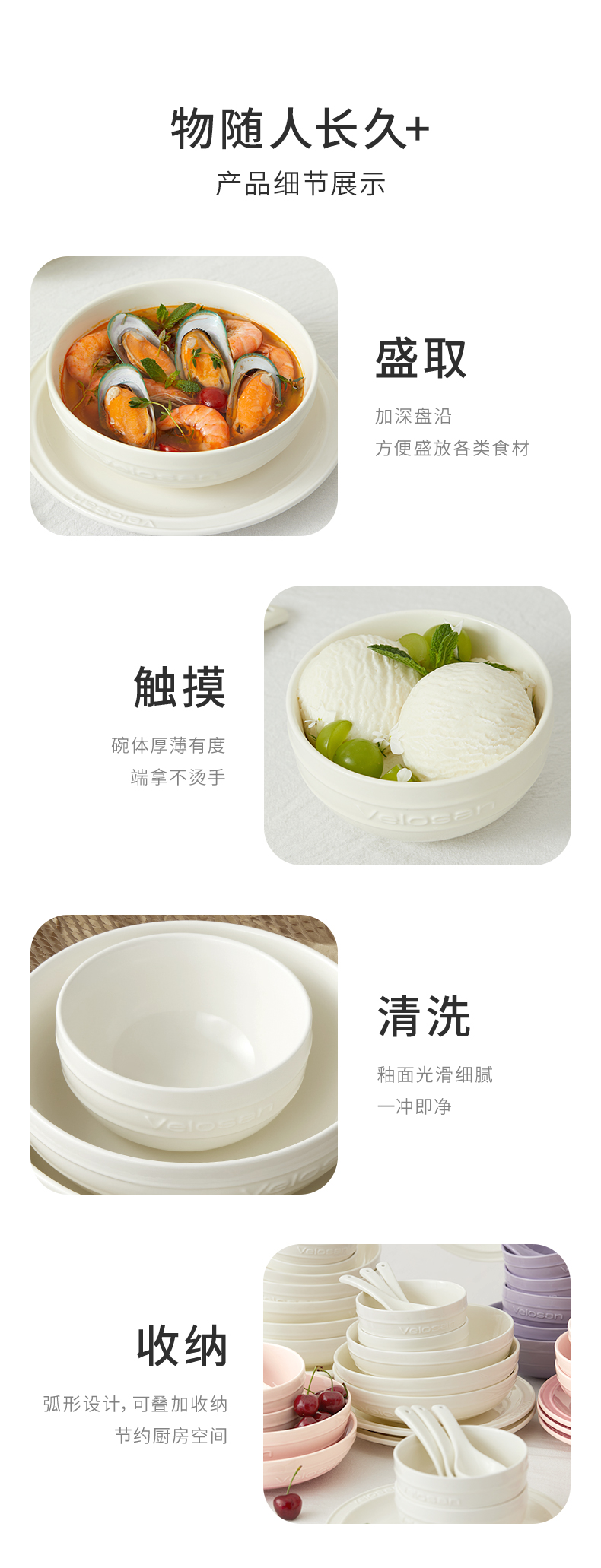 温仑山Velosan 鹅卵石系列渐变陶瓷餐具14件套装 奶油白&落樱粉餐具绝美上线;高颜值礼盒装;精选釉下彩工艺,微波炉、洗碗机、消毒机通用