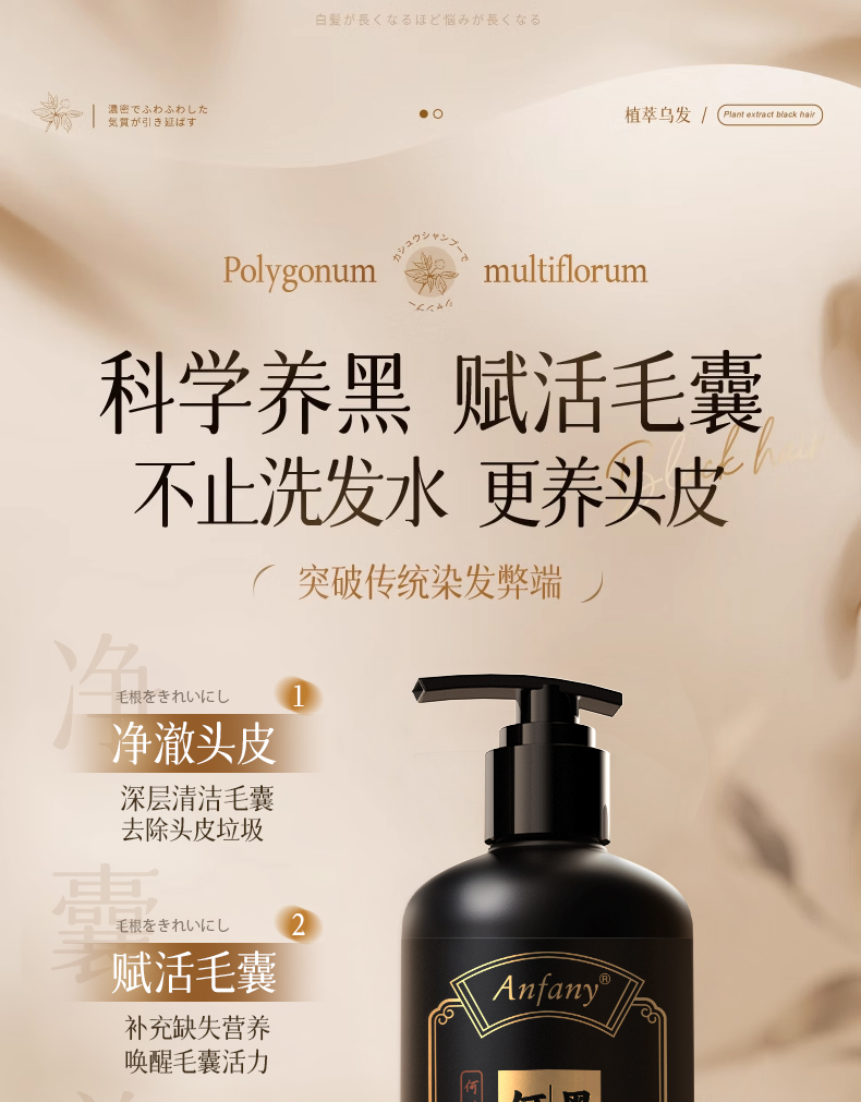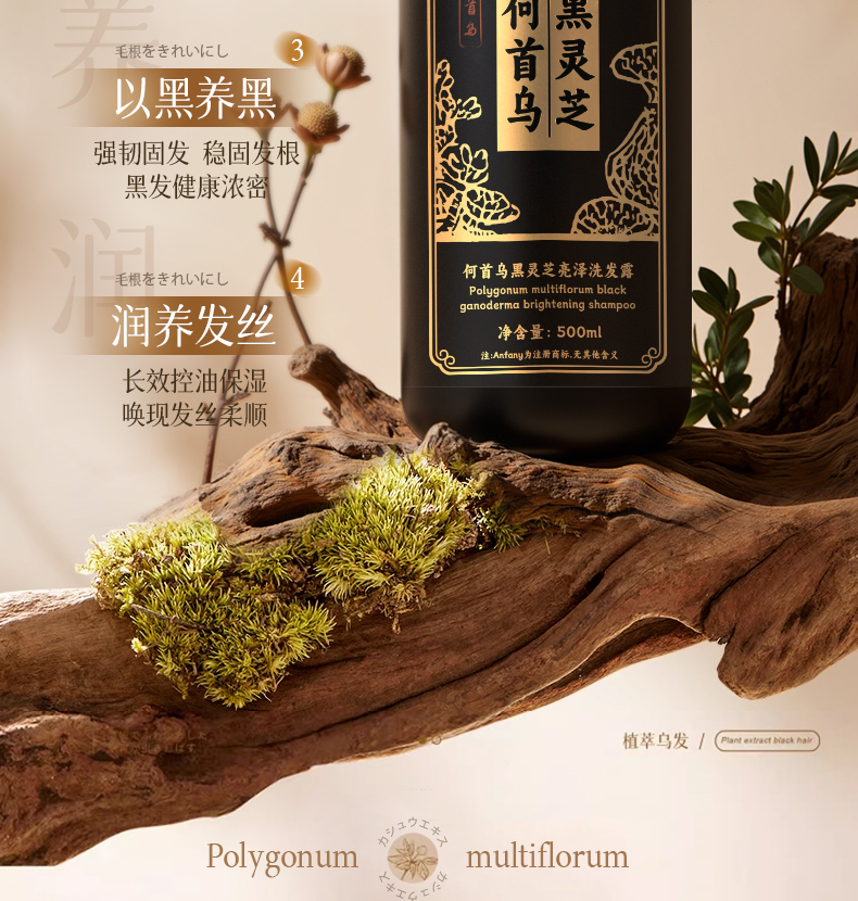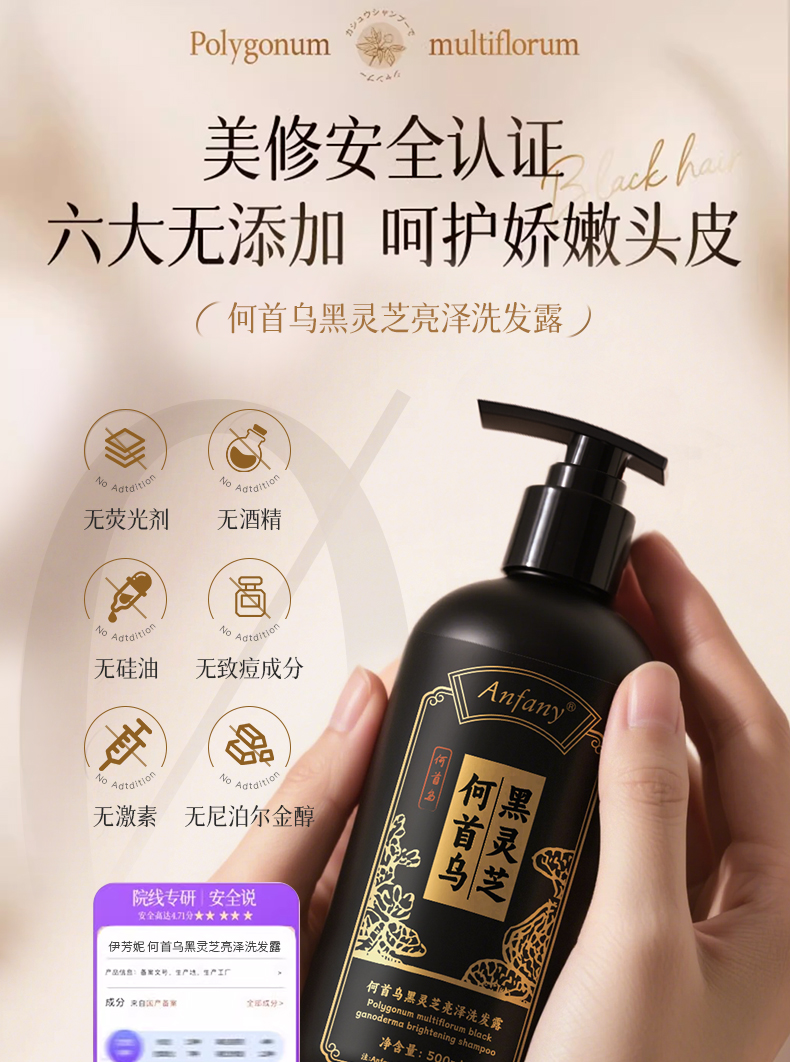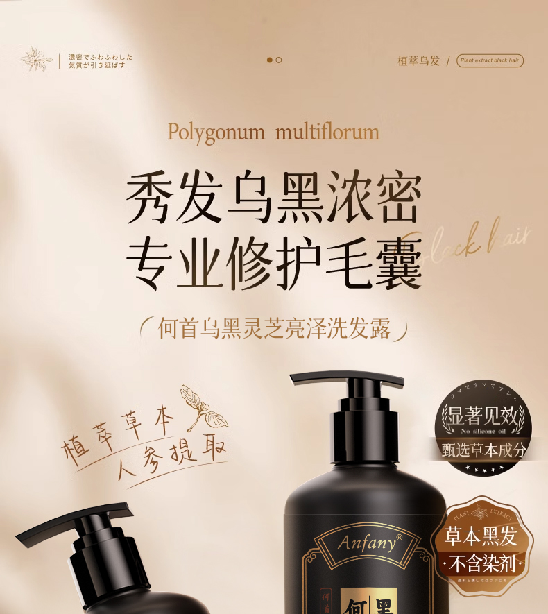 【超模君严选 山姆在售同款】Anfany--何首乌黑灵芝亮泽洗发露 科学养黑发养头皮、深层清洁毛囊补足营养、以黑养黑润养发丝、天然草本精华萃取、纳米级绵密泡沫、不发干超柔顺丝滑!