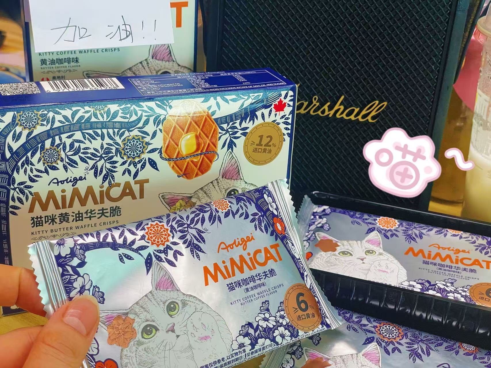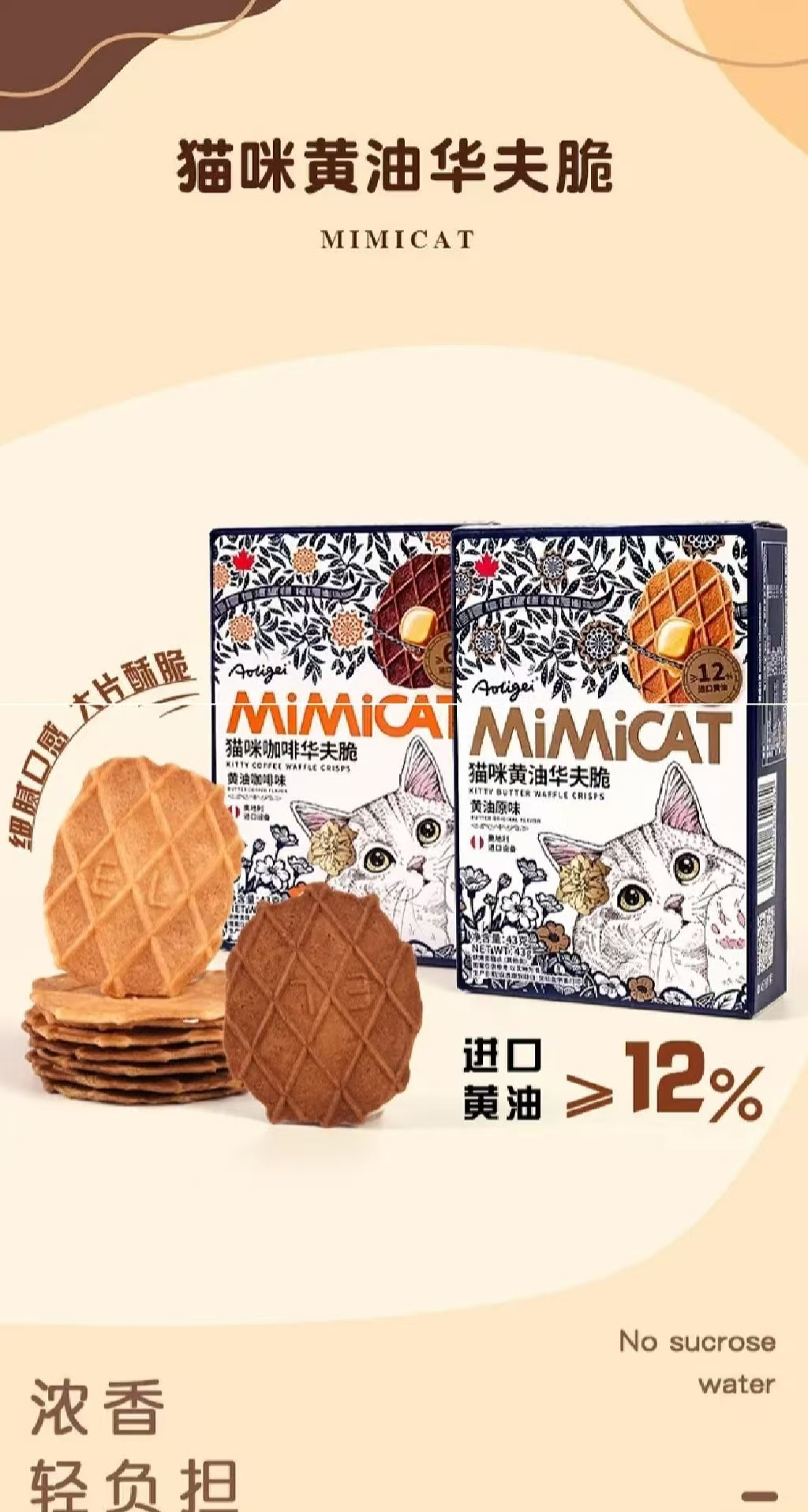 Aoligei/奥力给猫咪黄油华夫脆薄饼干咖啡味早餐解馋休闲零食小吃 43g/盒