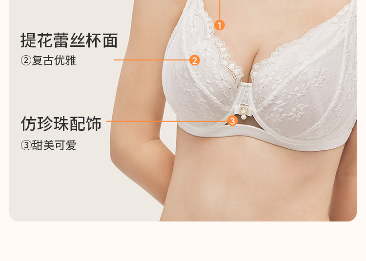 奶糖派大胸颜值内衣珍珠系列超薄透气单层精致蕾丝上托大杯文胸女