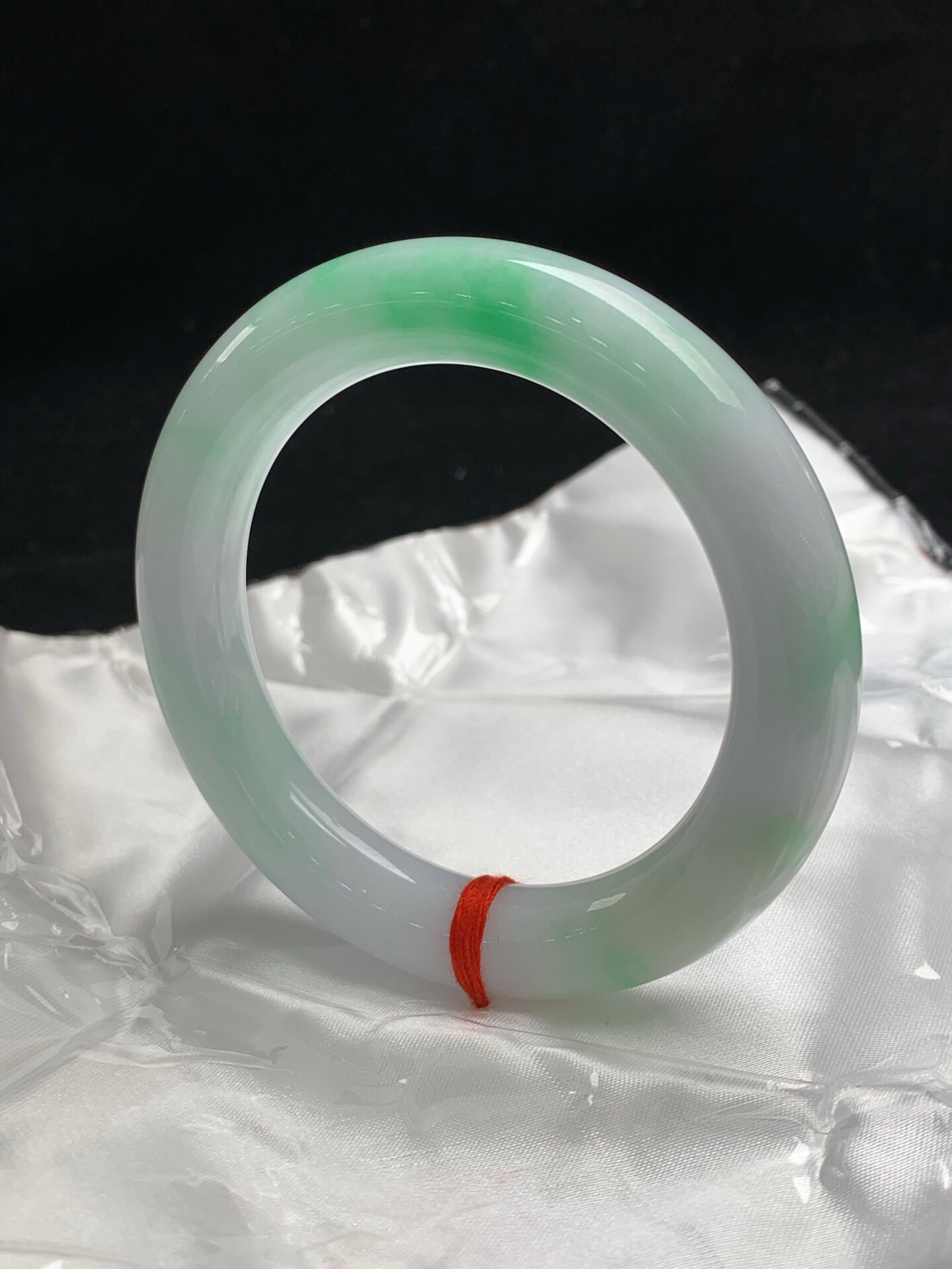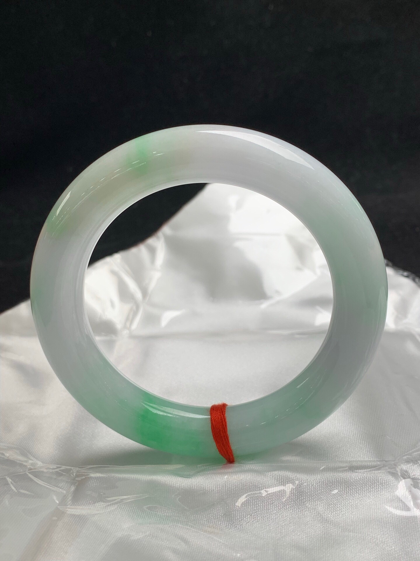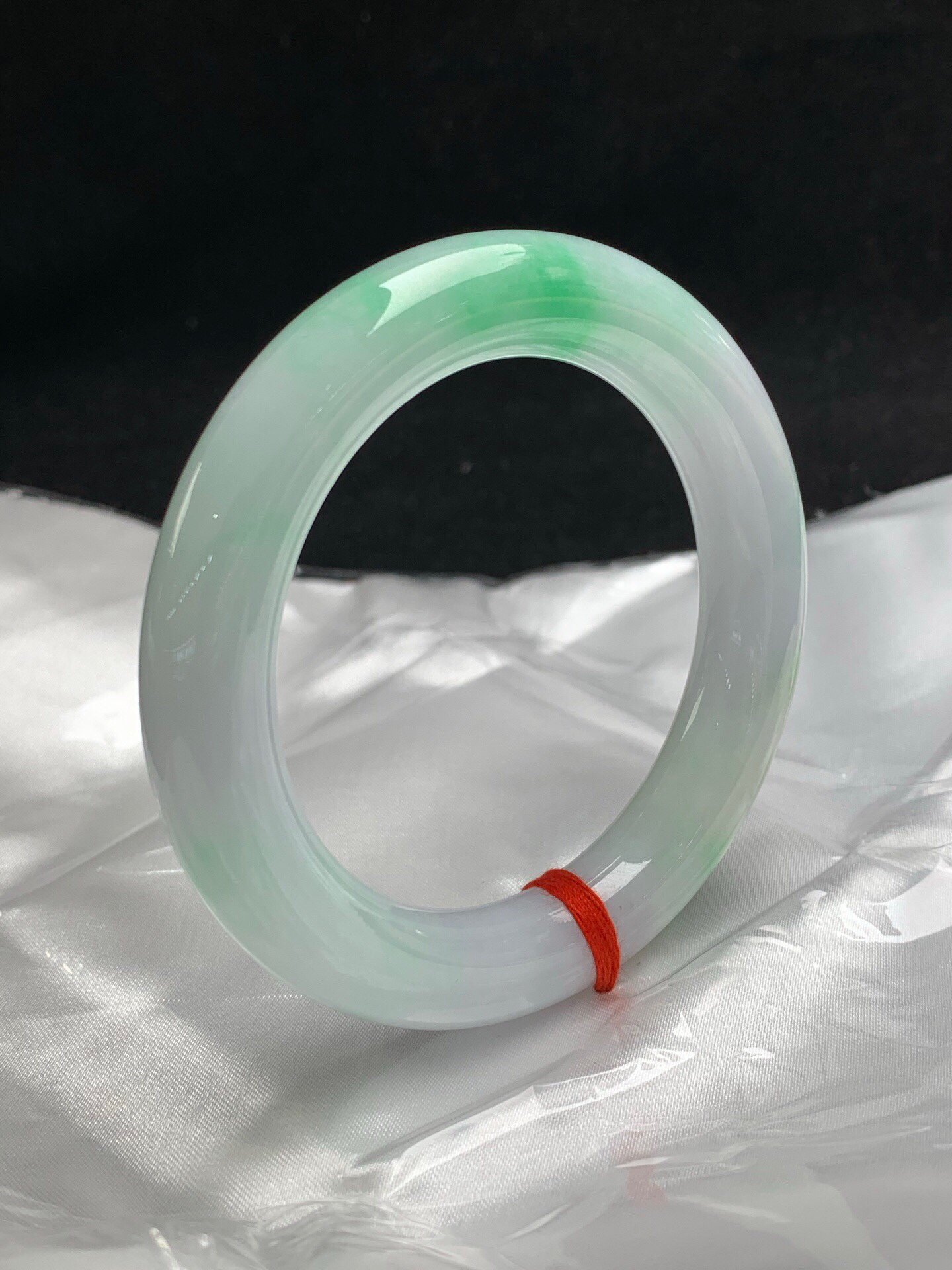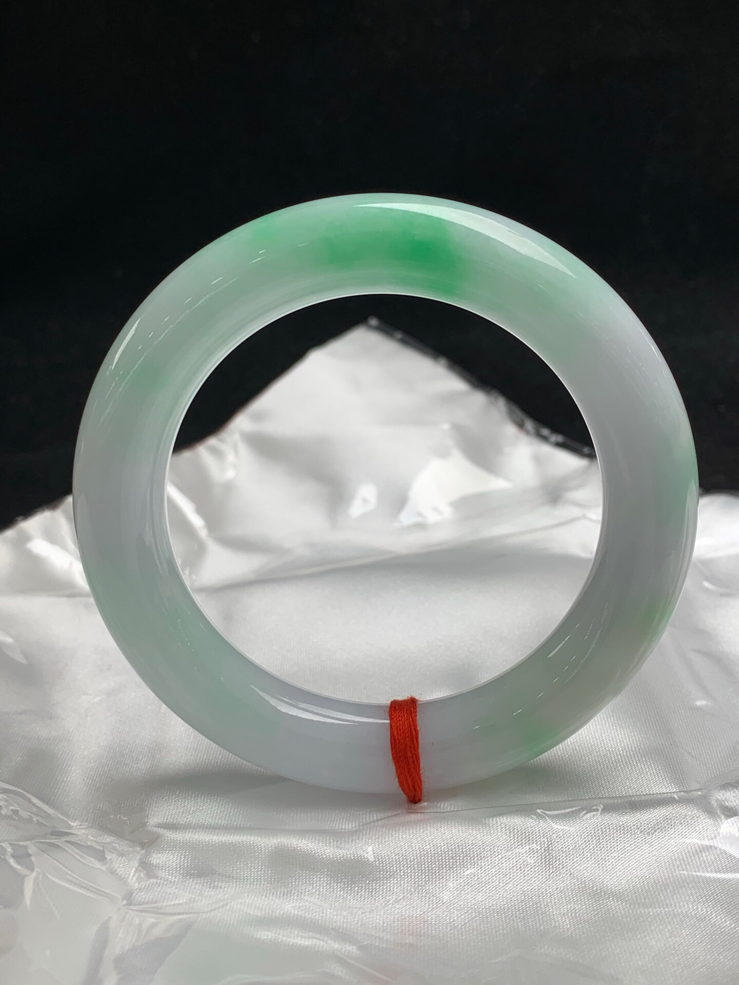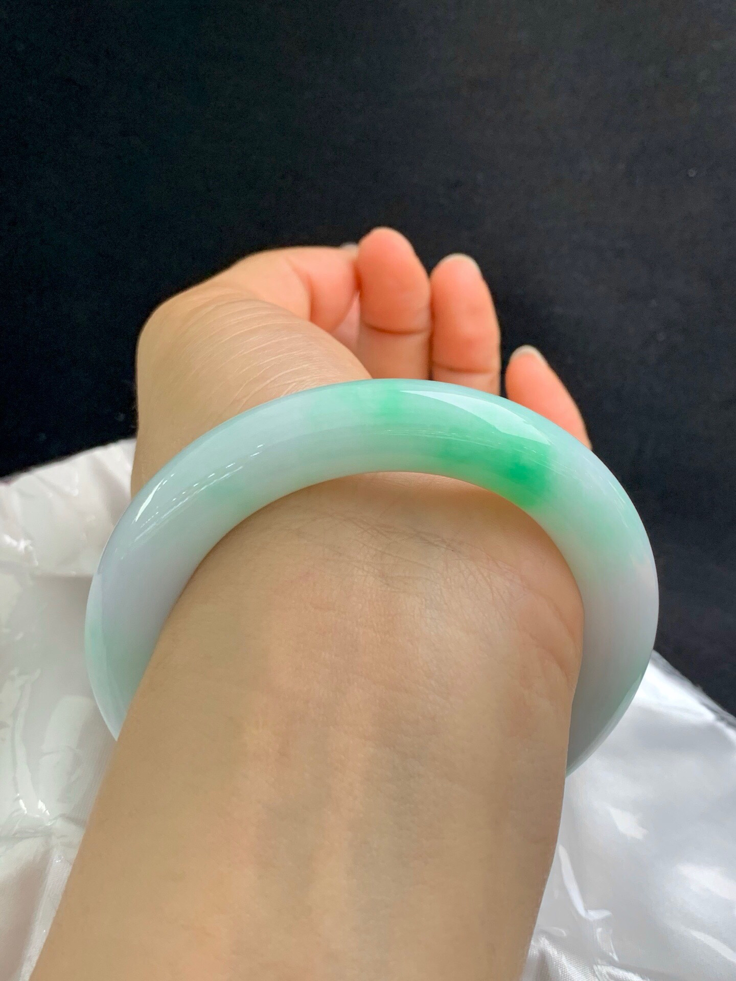 612469,58圈口,细糯飘绿胖圆条福镯,很淡的紫底,实物紫色基本不显色,飘阳绿,底子细腻,尺寸:58-12-11.9,超值价💰24800 #优石客珠宝#香玉荟萃