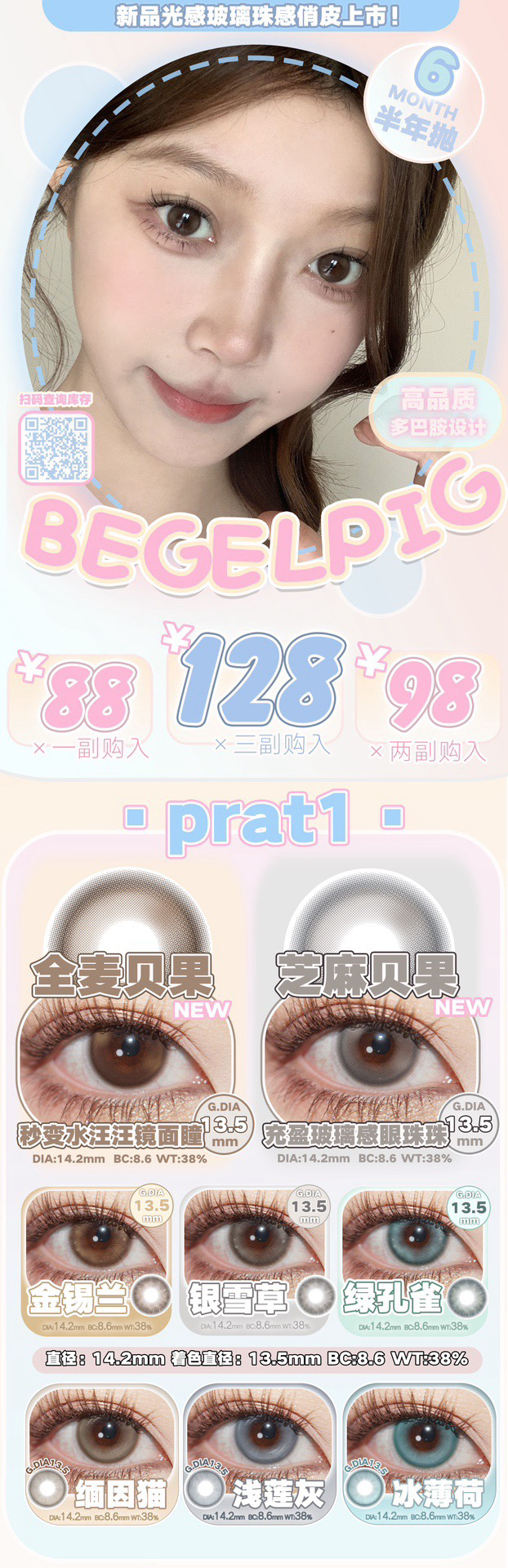 Begel Pig 半年抛金锡兰/银雪草/绿孔雀/缅因猫/浅莲灰/冰薄荷美瞳 两副88 三副118活动
