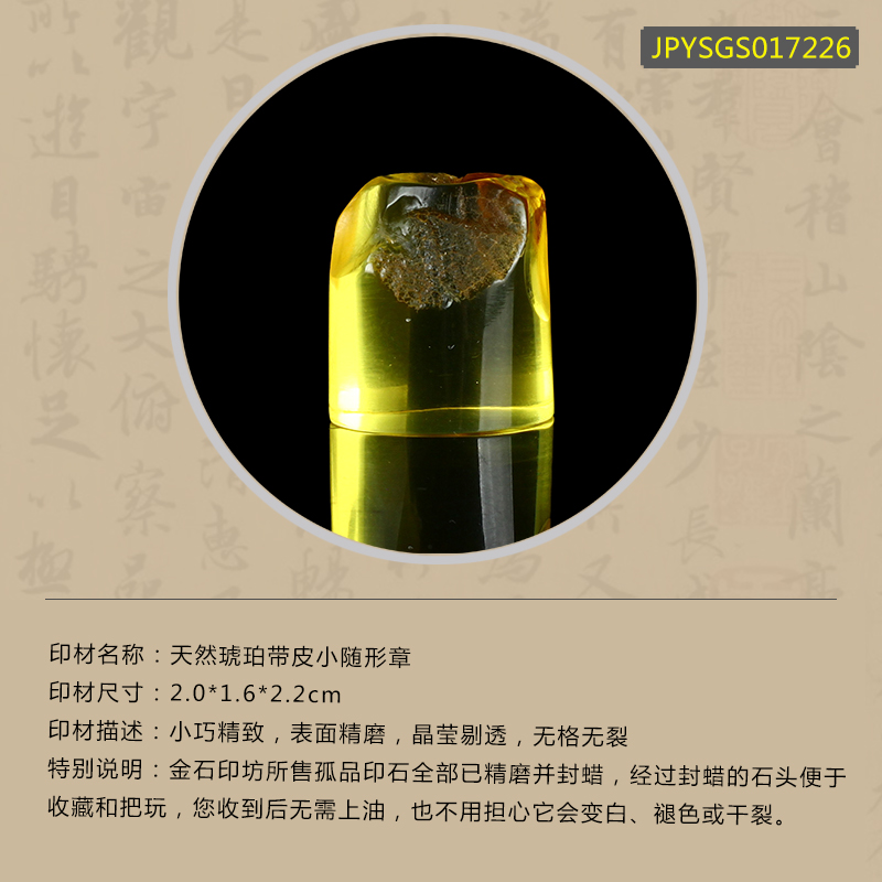 孤品017226天然琥珀带皮小随形章-2.0*1.6*2.2cm