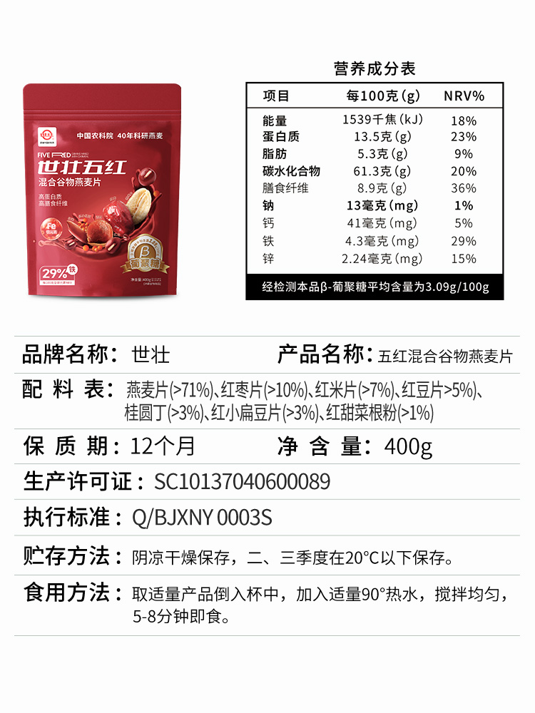 五黑混合燕麦片530克/袋 五红混合燕麦片400克/袋