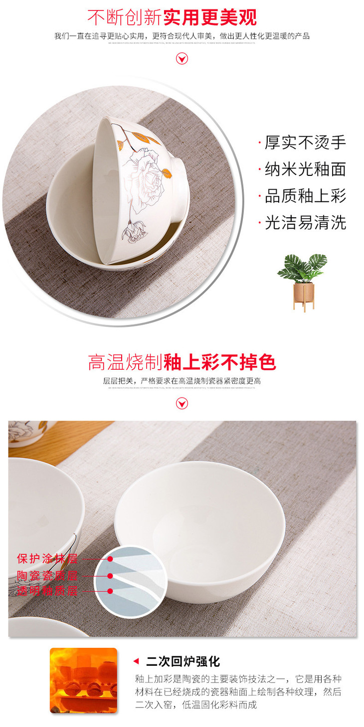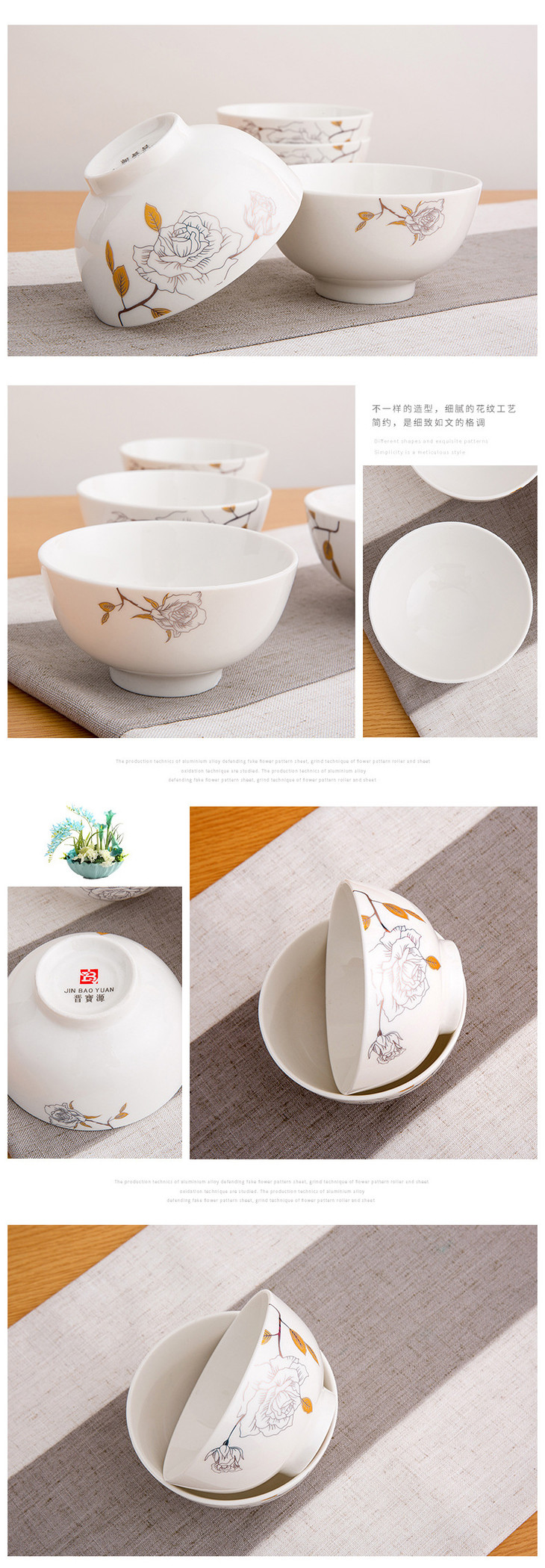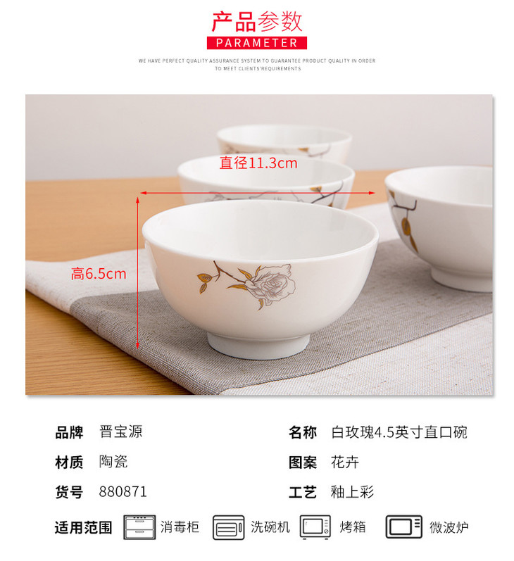 晋宝源4.5英寸直口碗饭碗小碗陶瓷碗餐具(白玫瑰)单个11-11.9cm白色单个