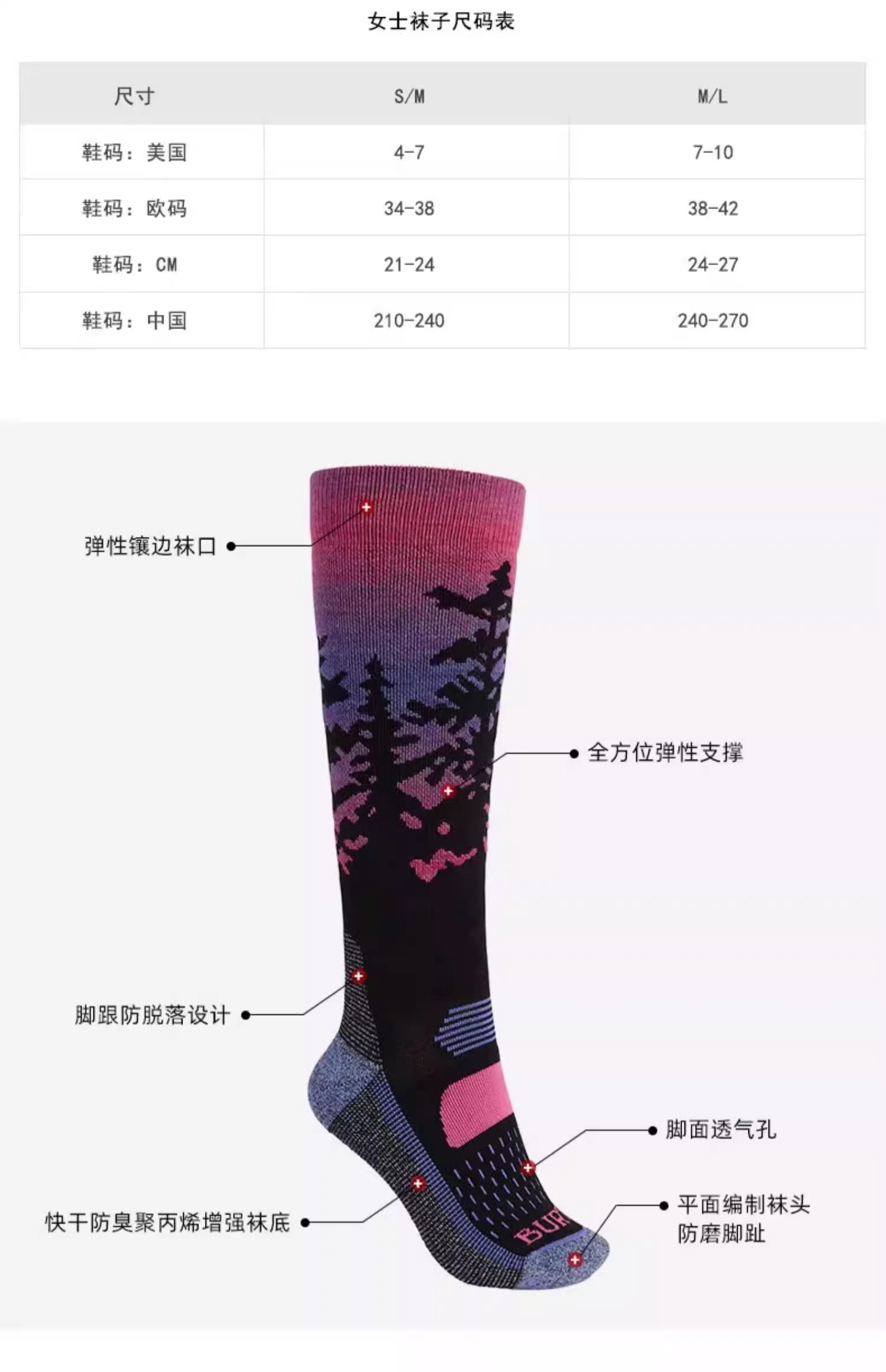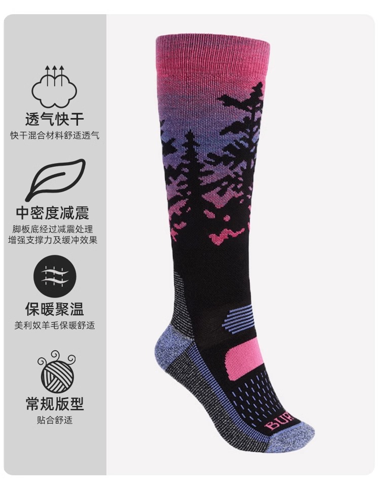 【六折清仓】BURTON/伯顿成人女款雪袜单双板可用保暖高筒吸汗速干防臭 100651