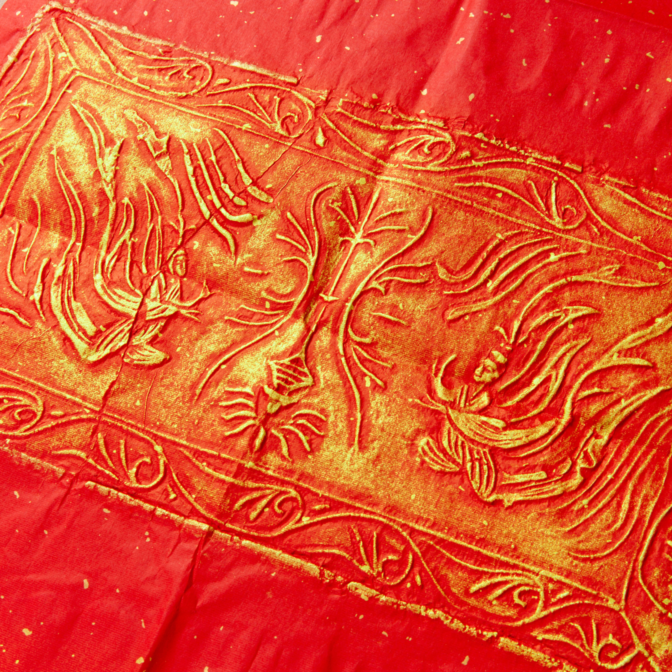 南北朝飞天砖拓红纸金拓,原石原拓,拓工精细,题材稀有,留有题跋空间,是馈赠和收藏的好选择。