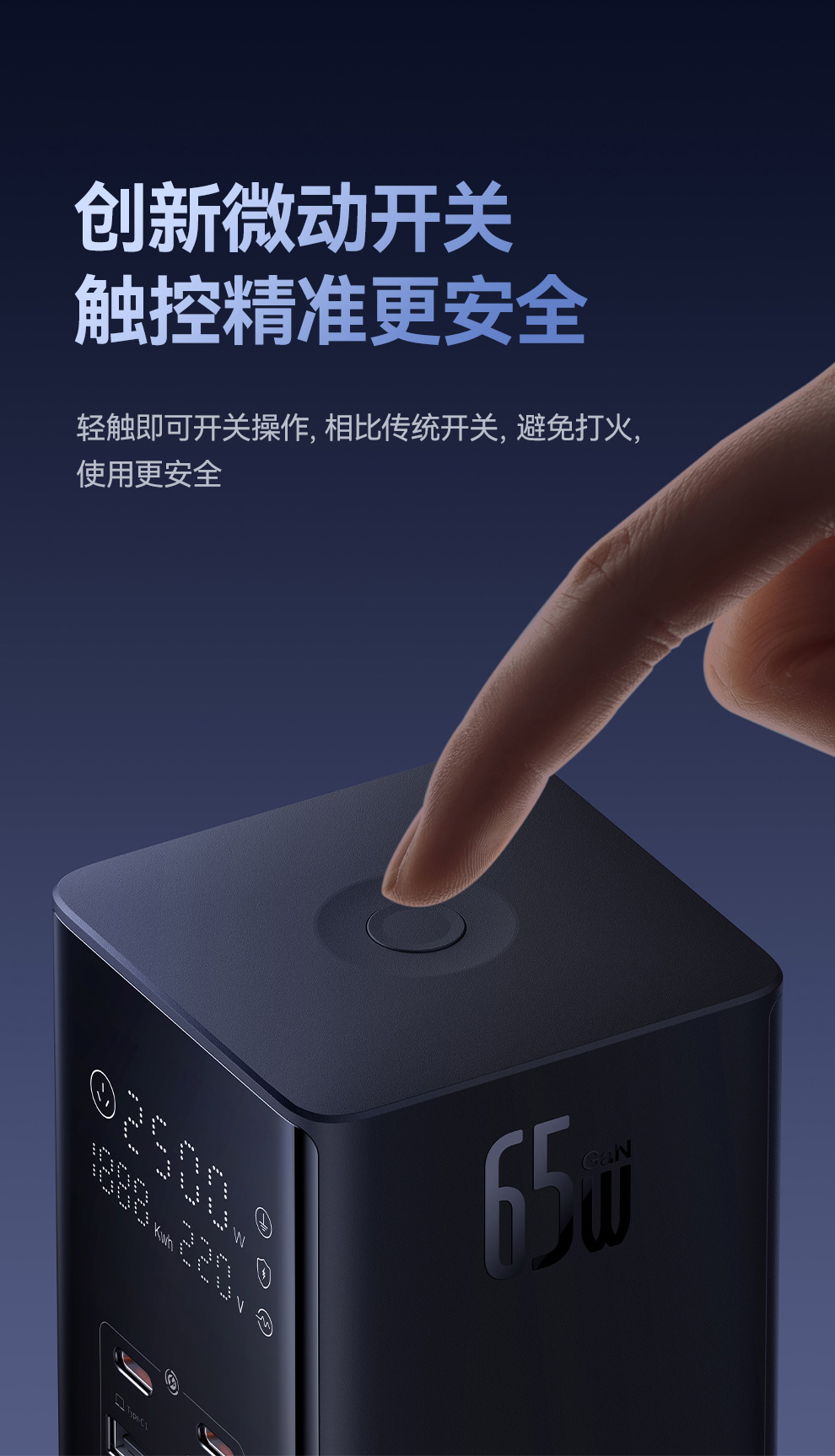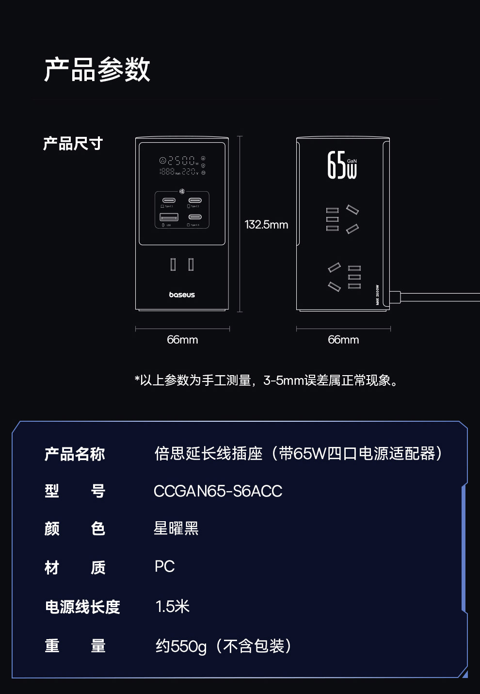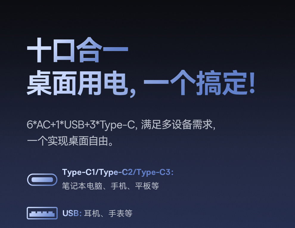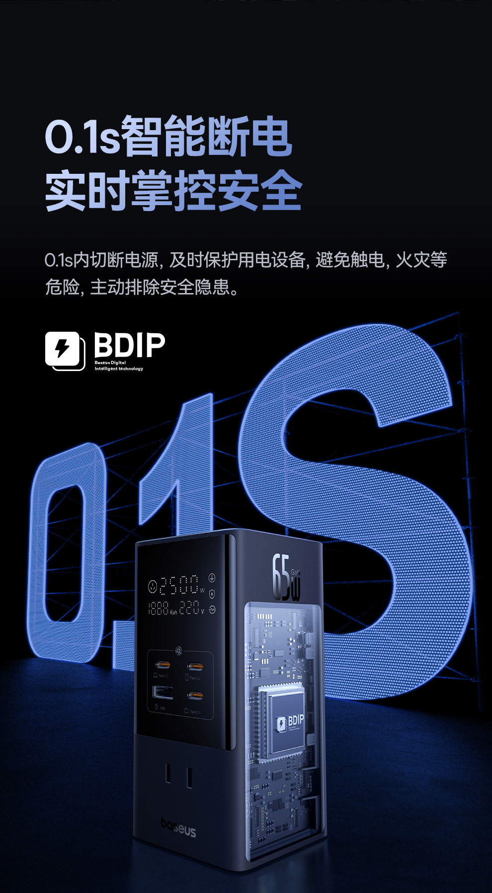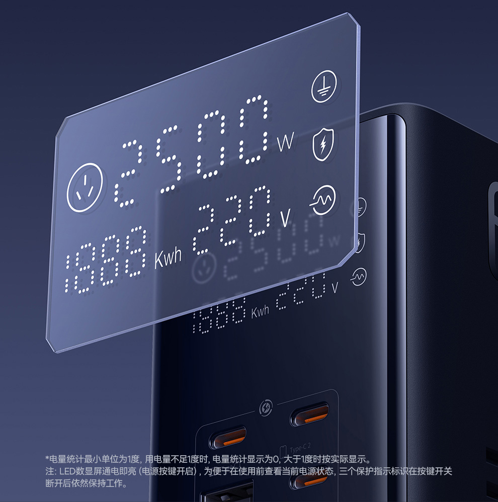 倍思 灵睿Pro系列 快充插线板 数显款 6AC+1U+3C 65W