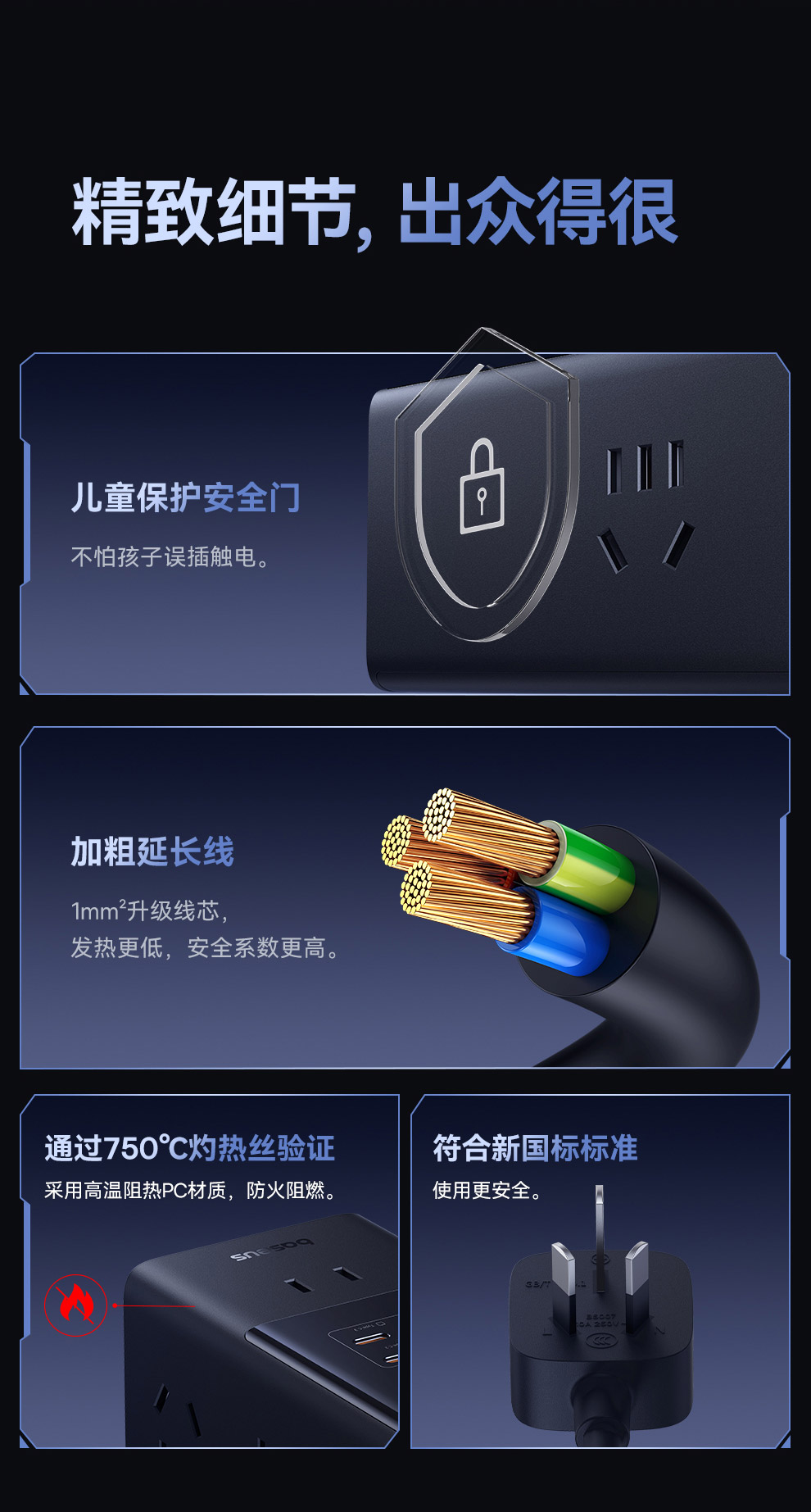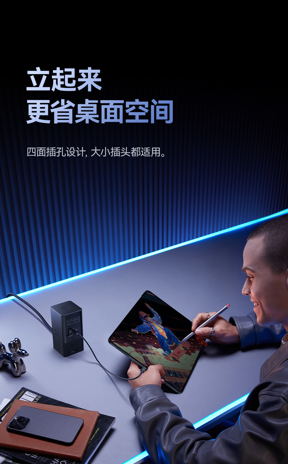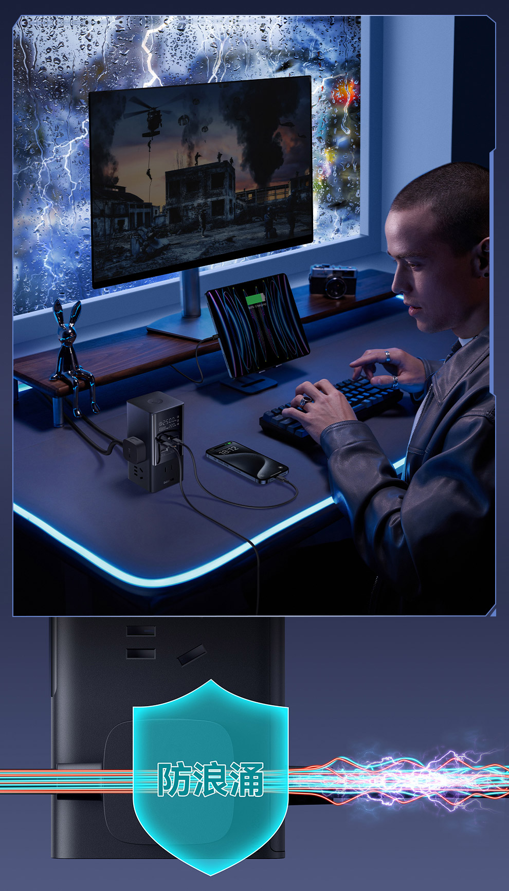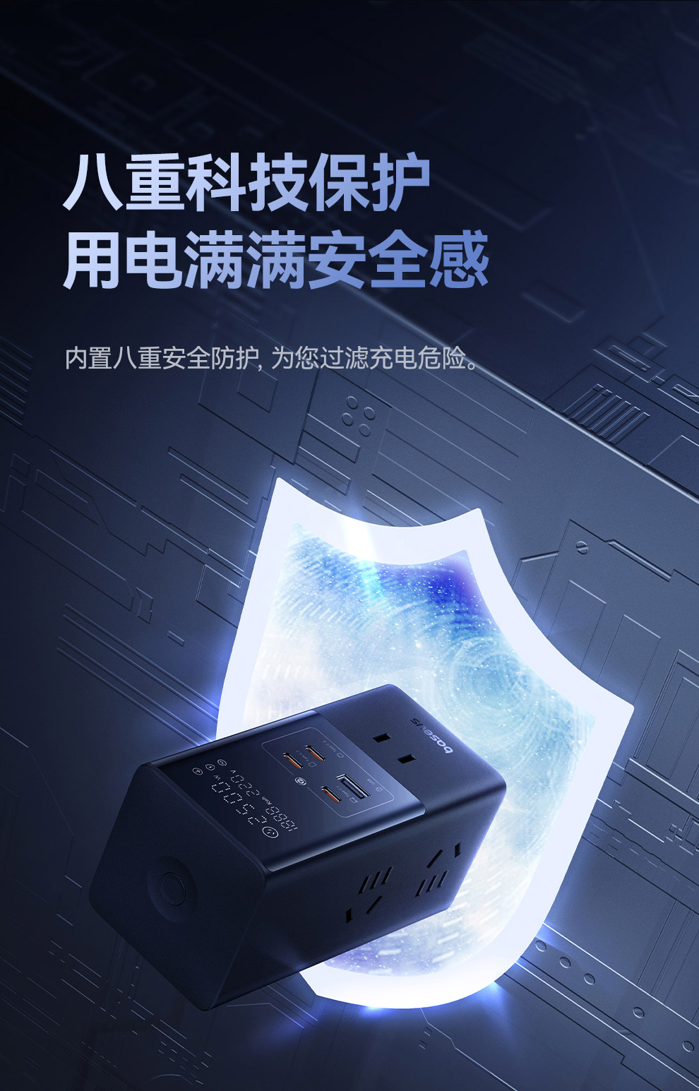 倍思 灵睿Pro系列 快充插线板 数显款 6AC+1U+3C 65W