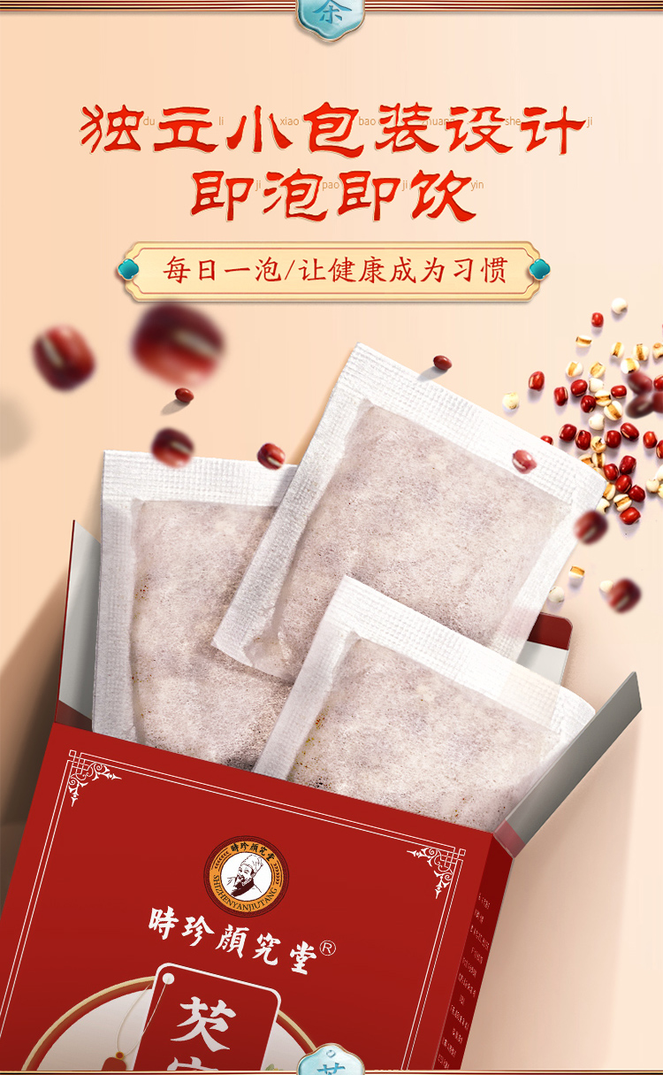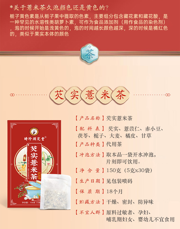 【百年中医传承,芡实薏米茶】即冲即饮源自于1921年时珍颜究堂红豆薏 米茶祛湿茶去湿气重赤小豆芡实茯苓五谷调养身体冲泡
