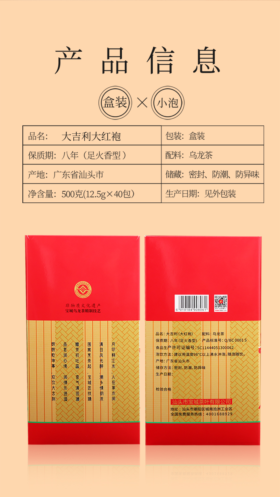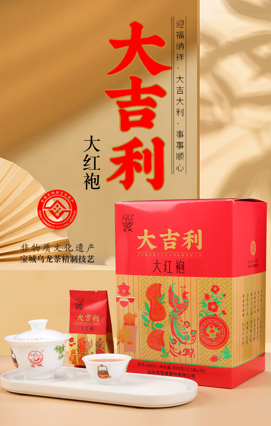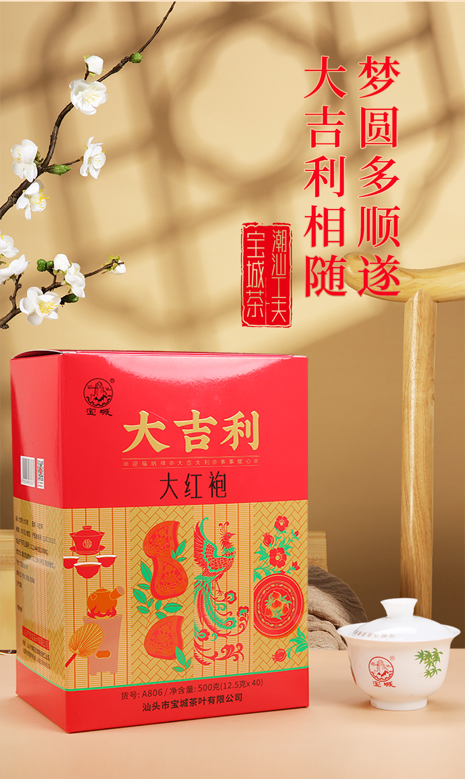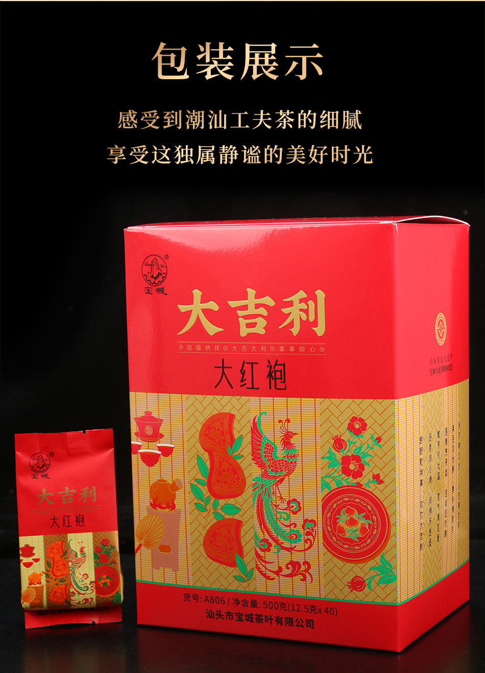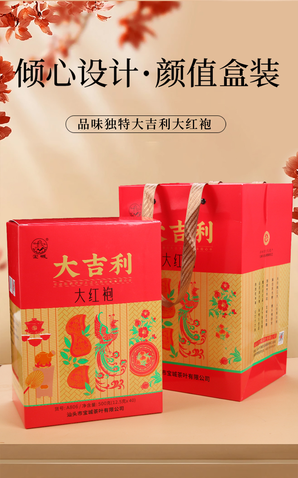 宝城大吉利大红袍茶叶500克小泡装礼盒装浓香型乌龙茶岩茶A806