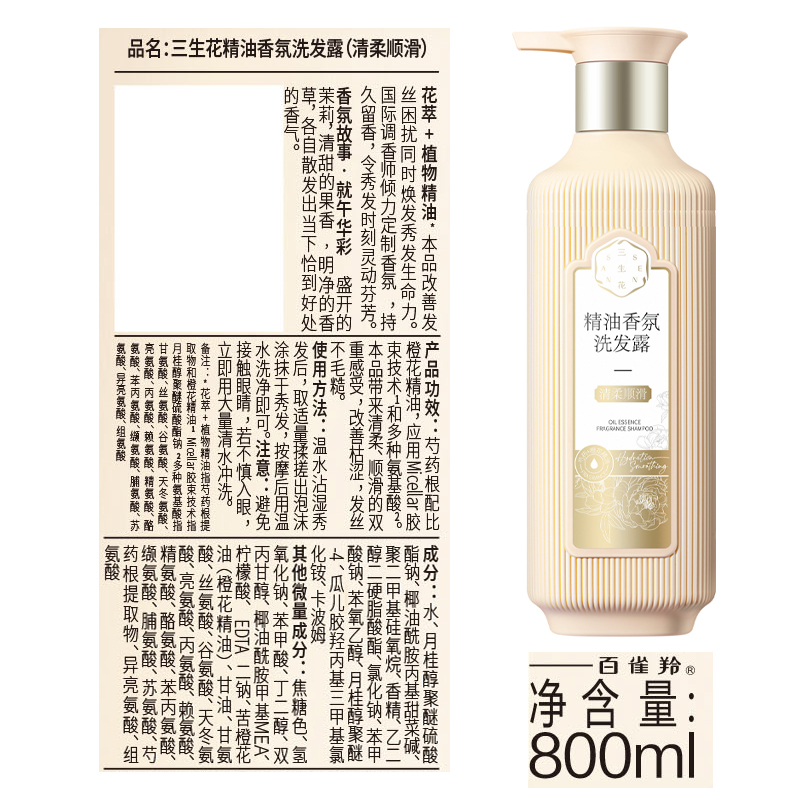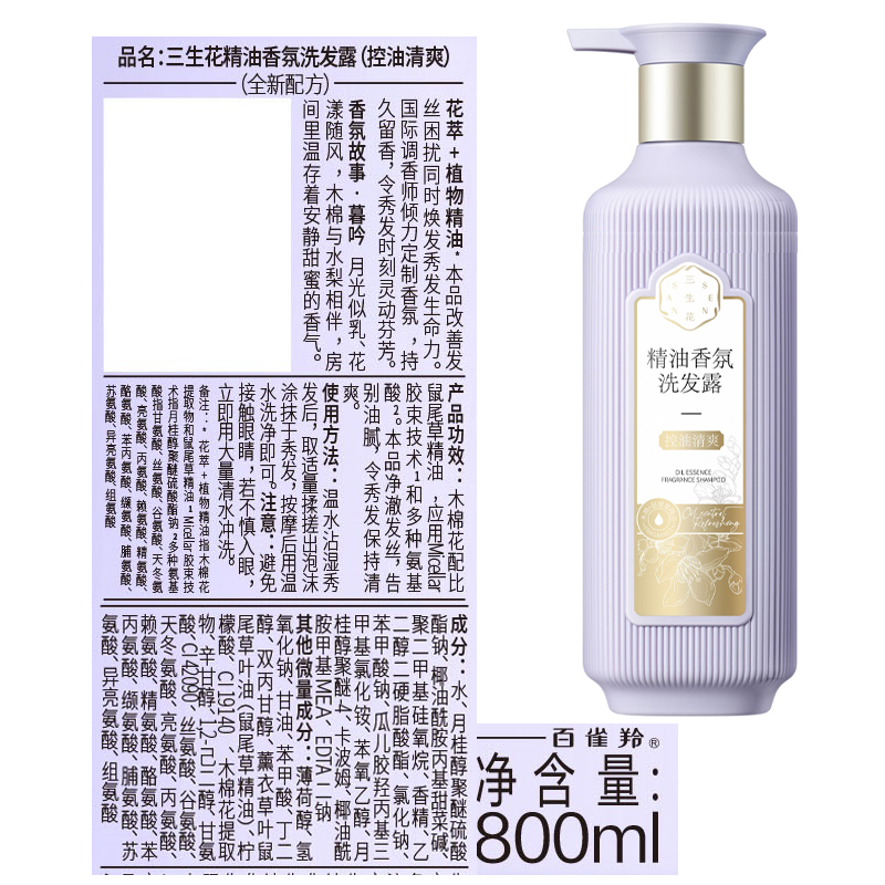 三生花洗发精油香氛洗发露800ml大容量(6款可选)洗发水洗发膏洗发乳