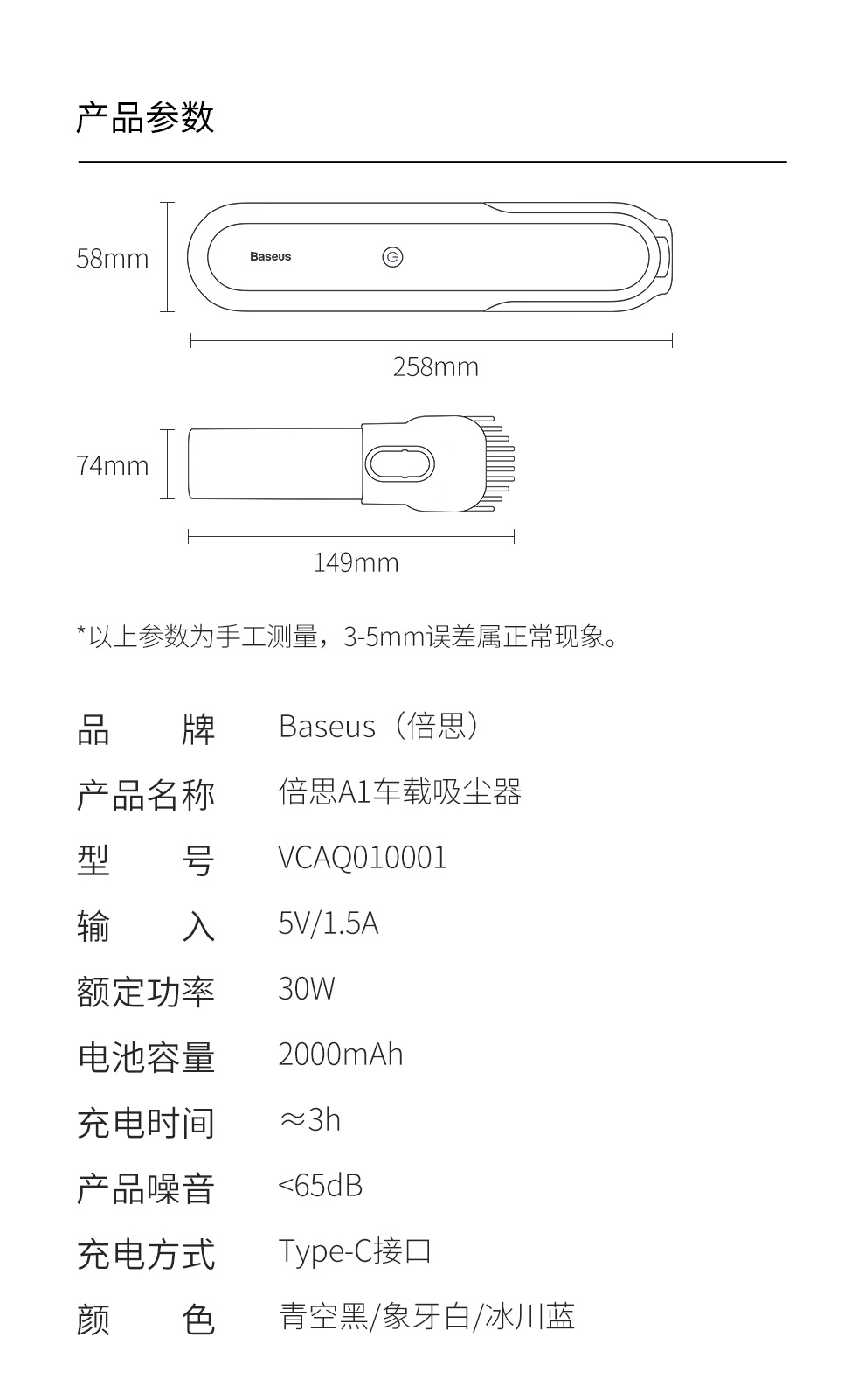 倍思 A1 车载吸尘器