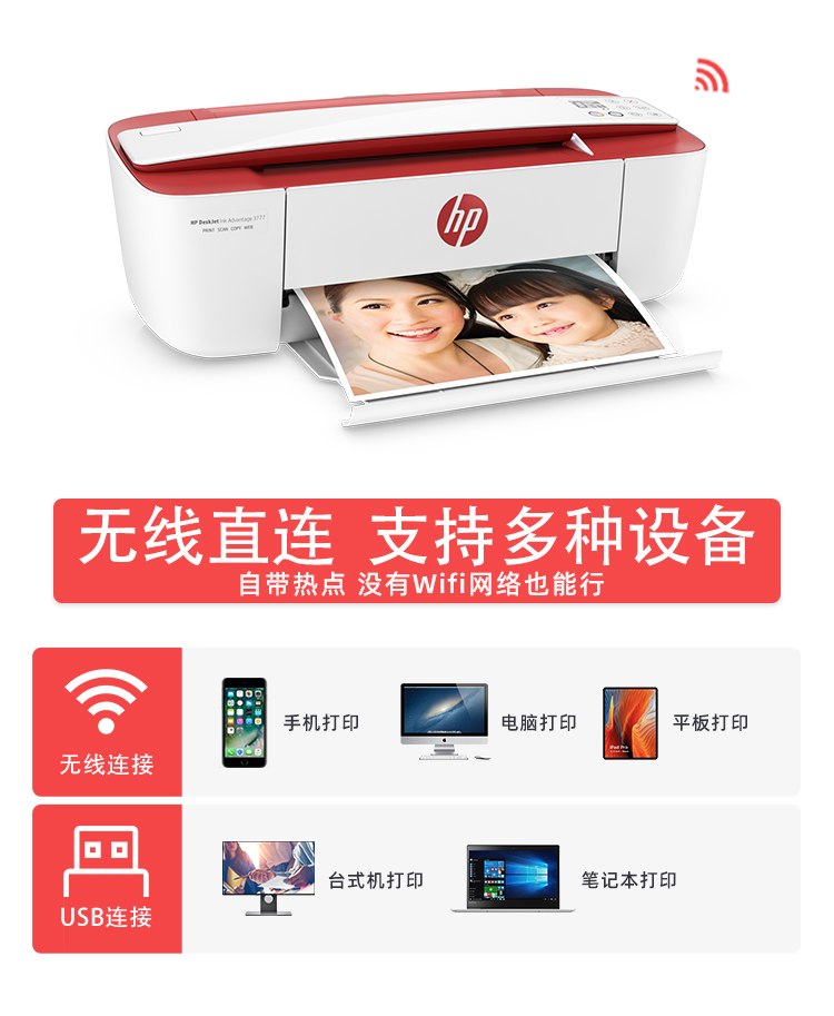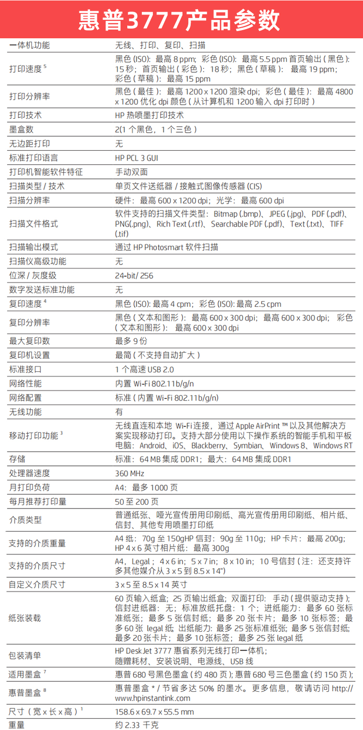 惠普无线系列彩色喷墨一体机 3776/3777两款型号