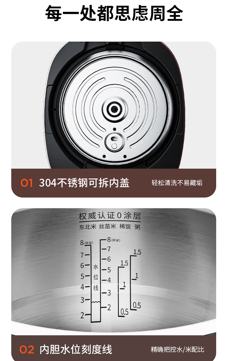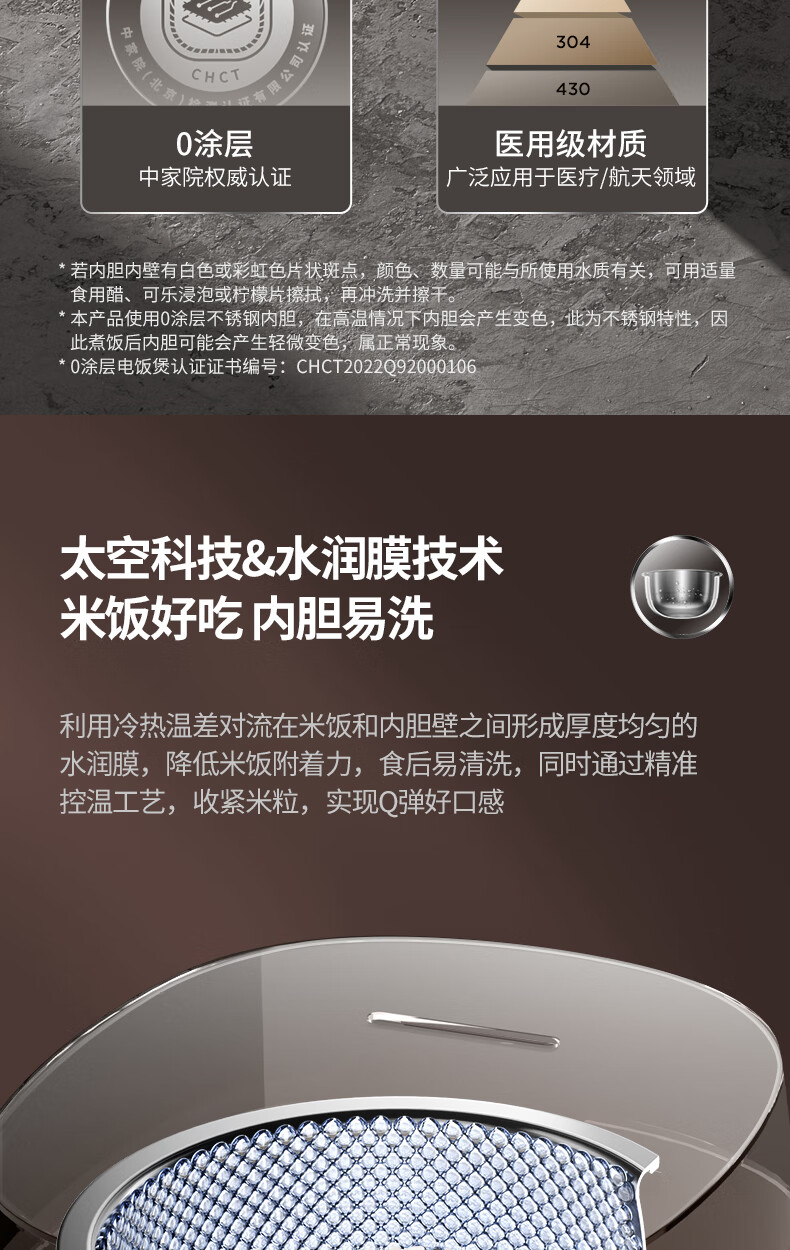 【太空系列】Joyoung九阳40N5无0涂层电饭煲316L不锈钢内胆电饭锅