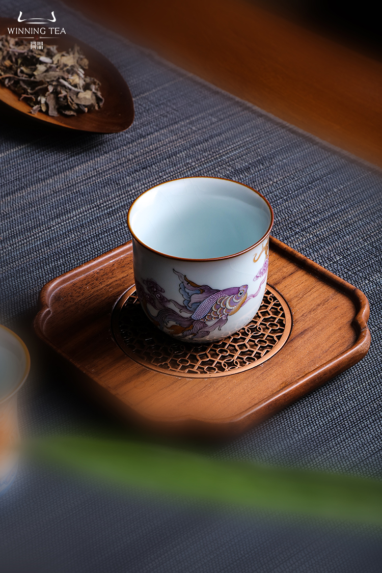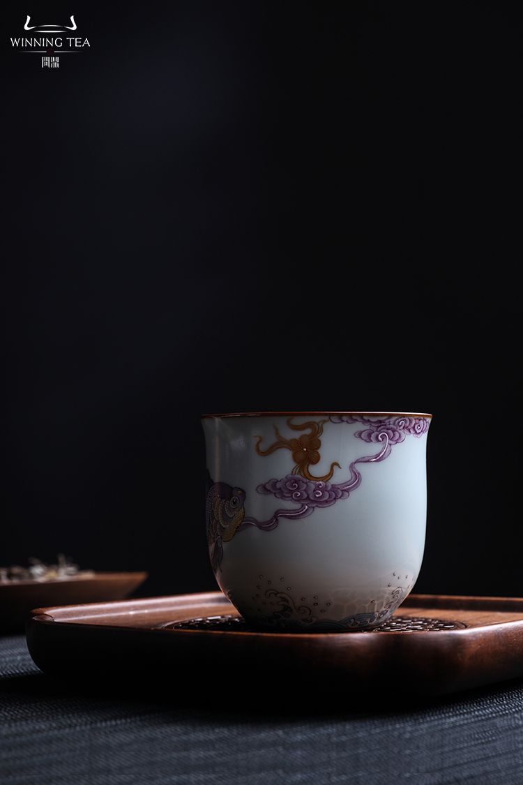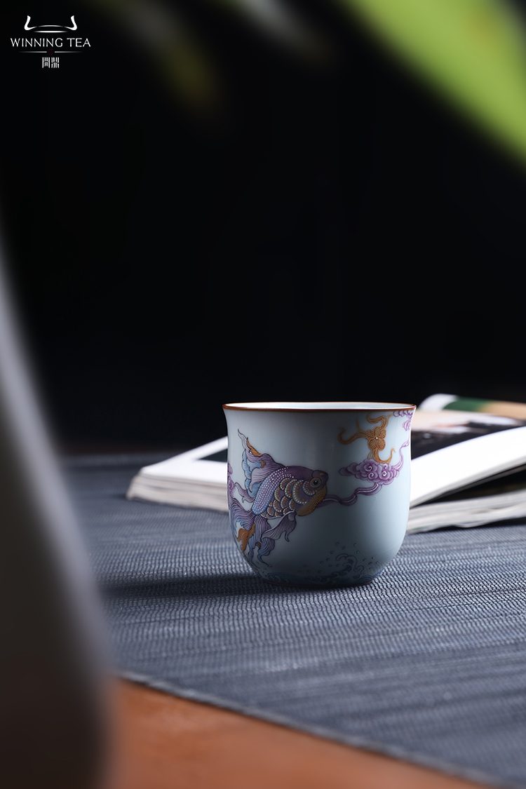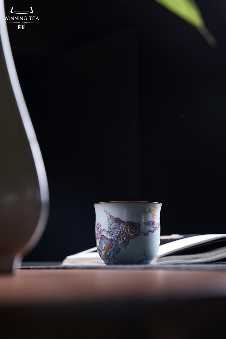 问鼎汝瓷鼎峰系列月白老款手握杯(潜鱼跃顶)