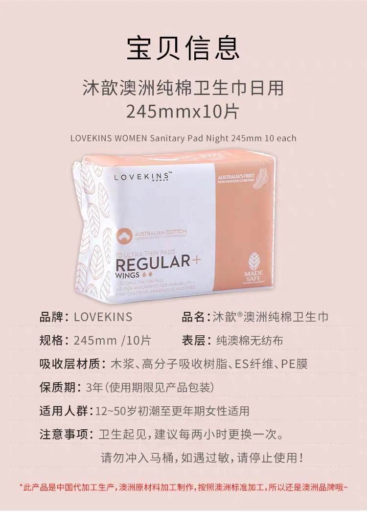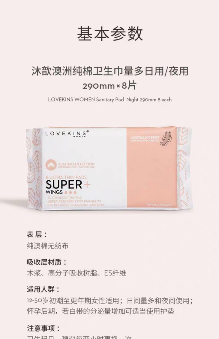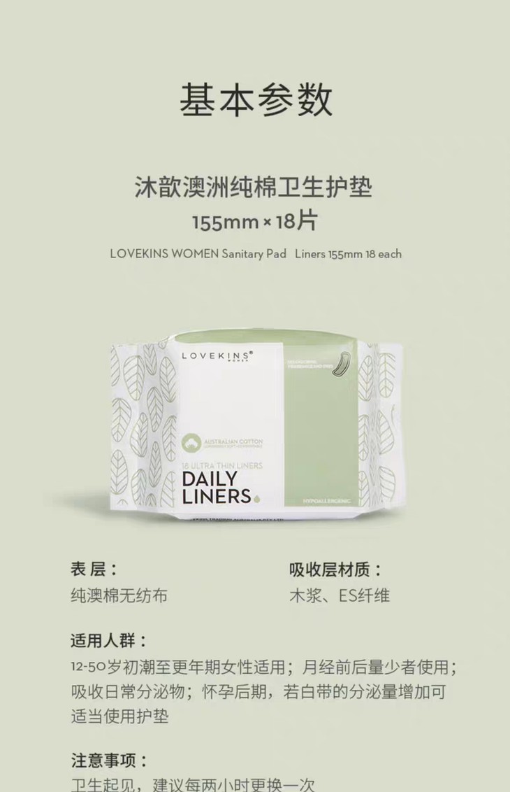 澳洲Lovekins沐歆超薄无胶芯卫生巾日用/量多日用/夜用/护垫 共四款 安睡裤