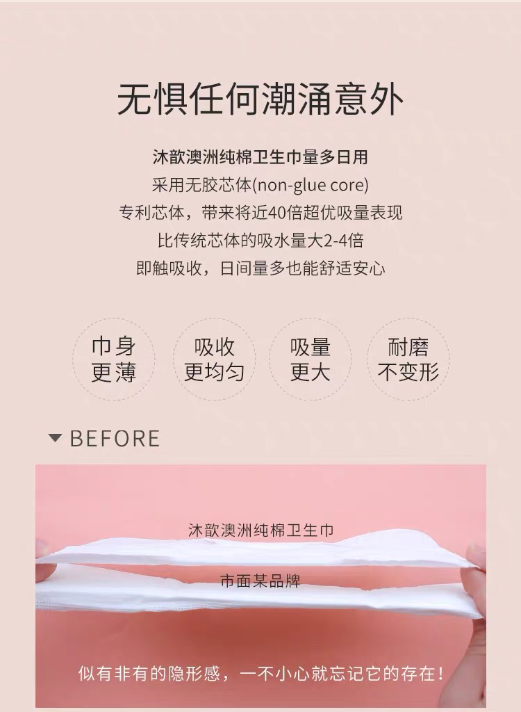 BTW,吸水性这么好又如此透气的卫生巾,也非常适合放进待产包作为月子护理,谁用谁知道。