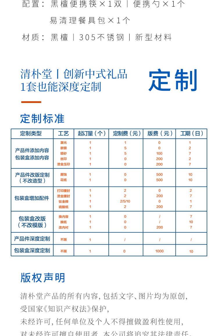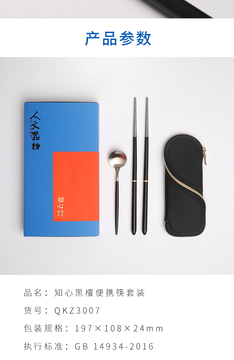 清朴堂知心黑檀便携筷套装