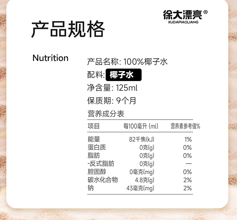 【品名】南国红豆薏米椰子水/绿豆椰子水/100%椰子水 【规格】125ml/248ml/瓶 【保质期】9个月 【储存方法】请置于阴凉干燥处,避免阳光直射 【产地】海南 【发货地】海南/广东/安徽 【发货快递】三通一达,邮政、极兔等随机 【不发货区域】新疆,西藏,港澳台地区不发 【补邮费地区】甘肃,宁夏,内蒙古,青海+5元/件 【发货时效】48小时,节假日顺延 |
