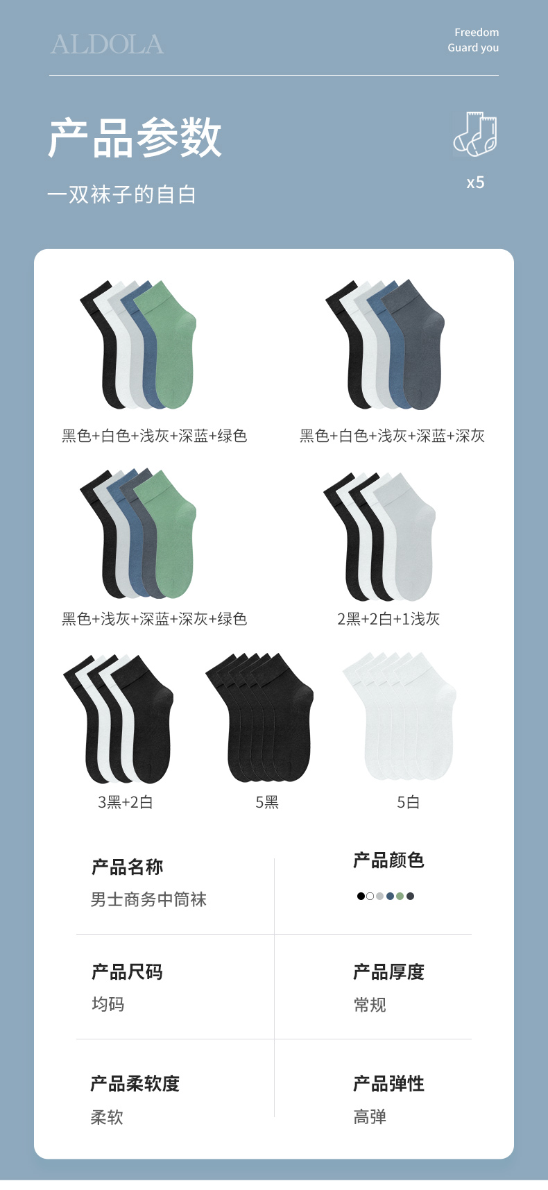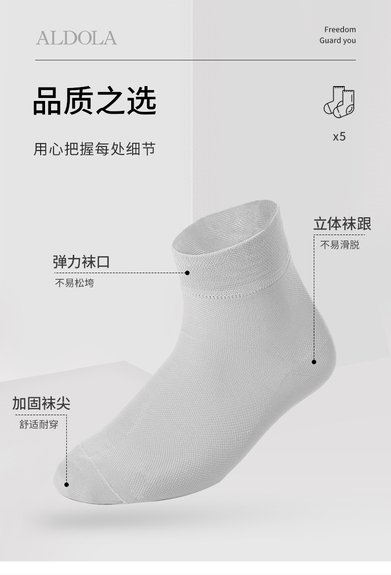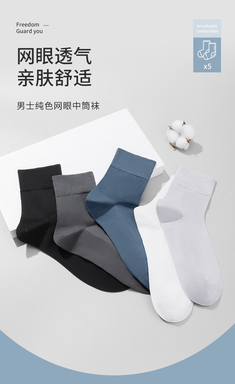雅黛丽袜子男棉质亲肤透气黑白运动袜薄款透气网眼短袜商务中筒袜
