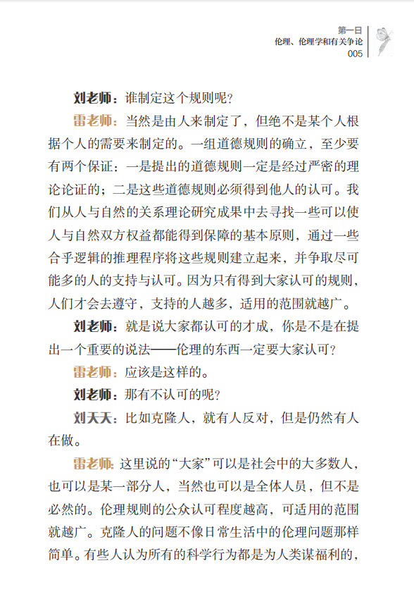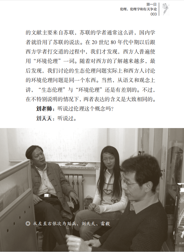 整本书氛围轻松,看似闲谈,其实主线明确,雷毅和刘兵二位学者穿针引线般将深奥的伦理学原理通俗且生动的案例进行诠释,在无形中建构出生态伦理的学术框架。清华附中学生刘天天的加入是点睛之笔,确保了本书能为学生及普通大众群体所领会。