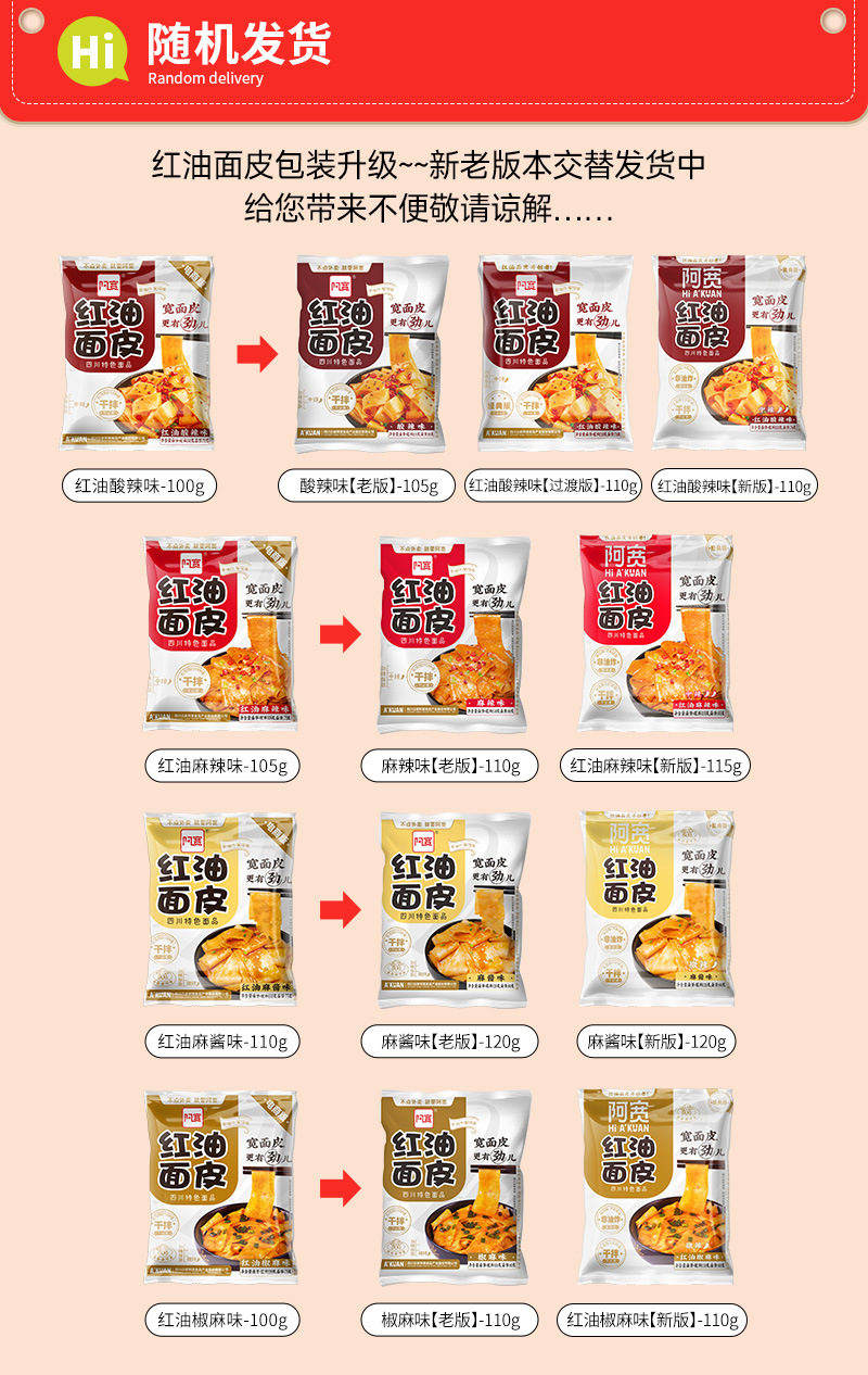 【食品酒水】阿宽红油面皮105g*20包整箱