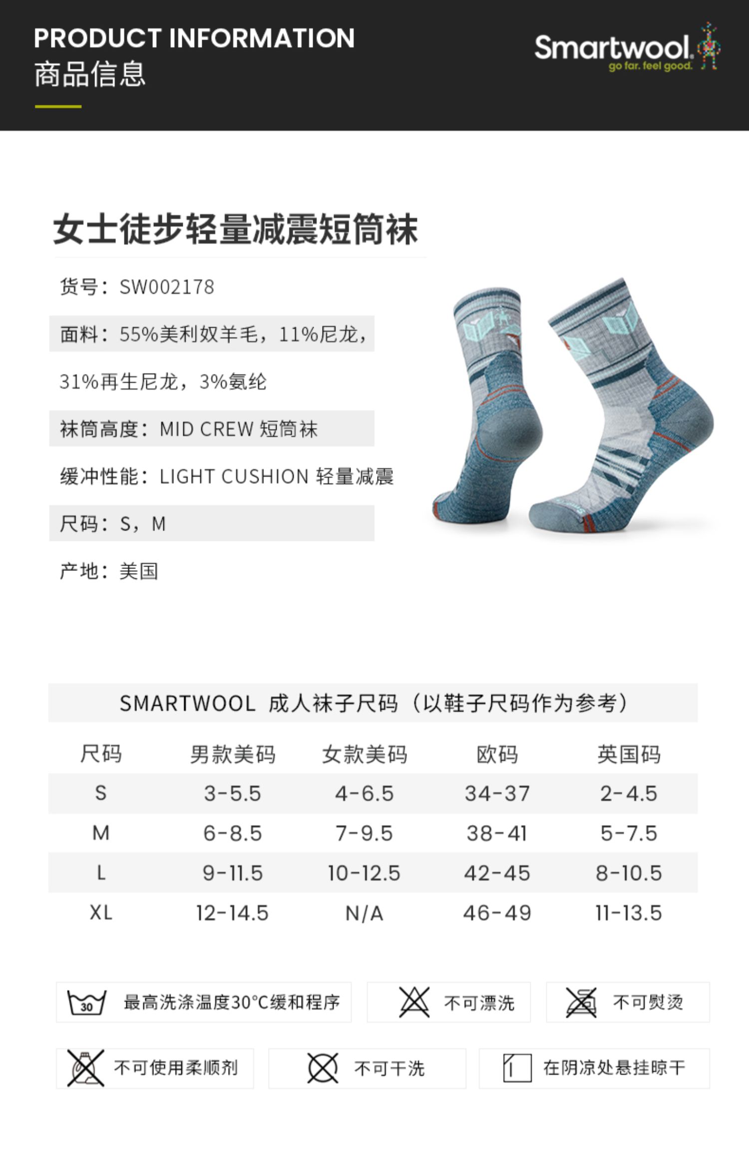 Smartwool女士徒步轻量减震短筒袜减震羊毛袜2178