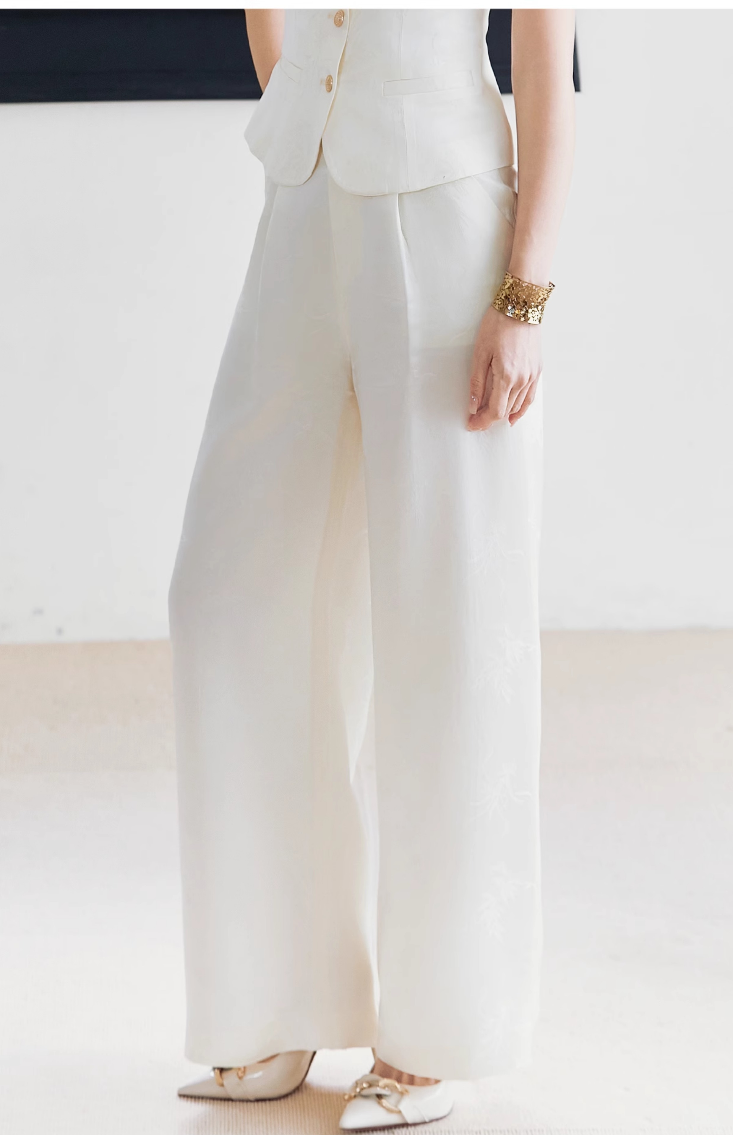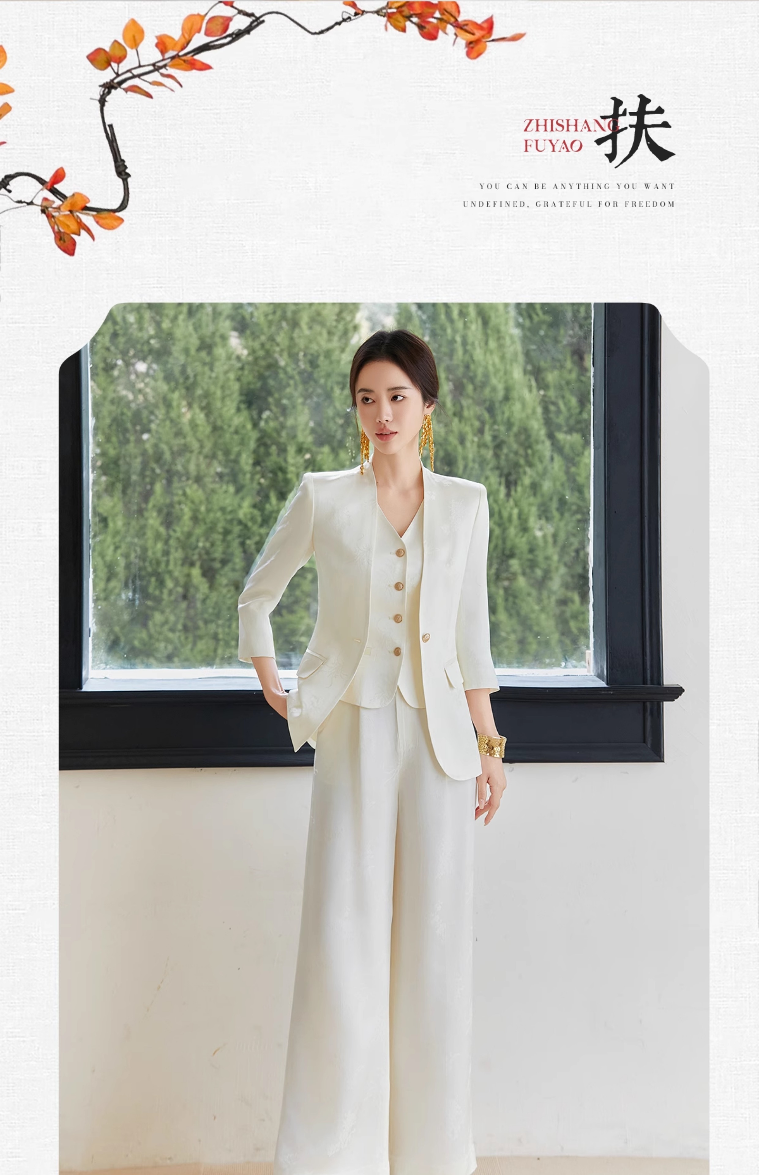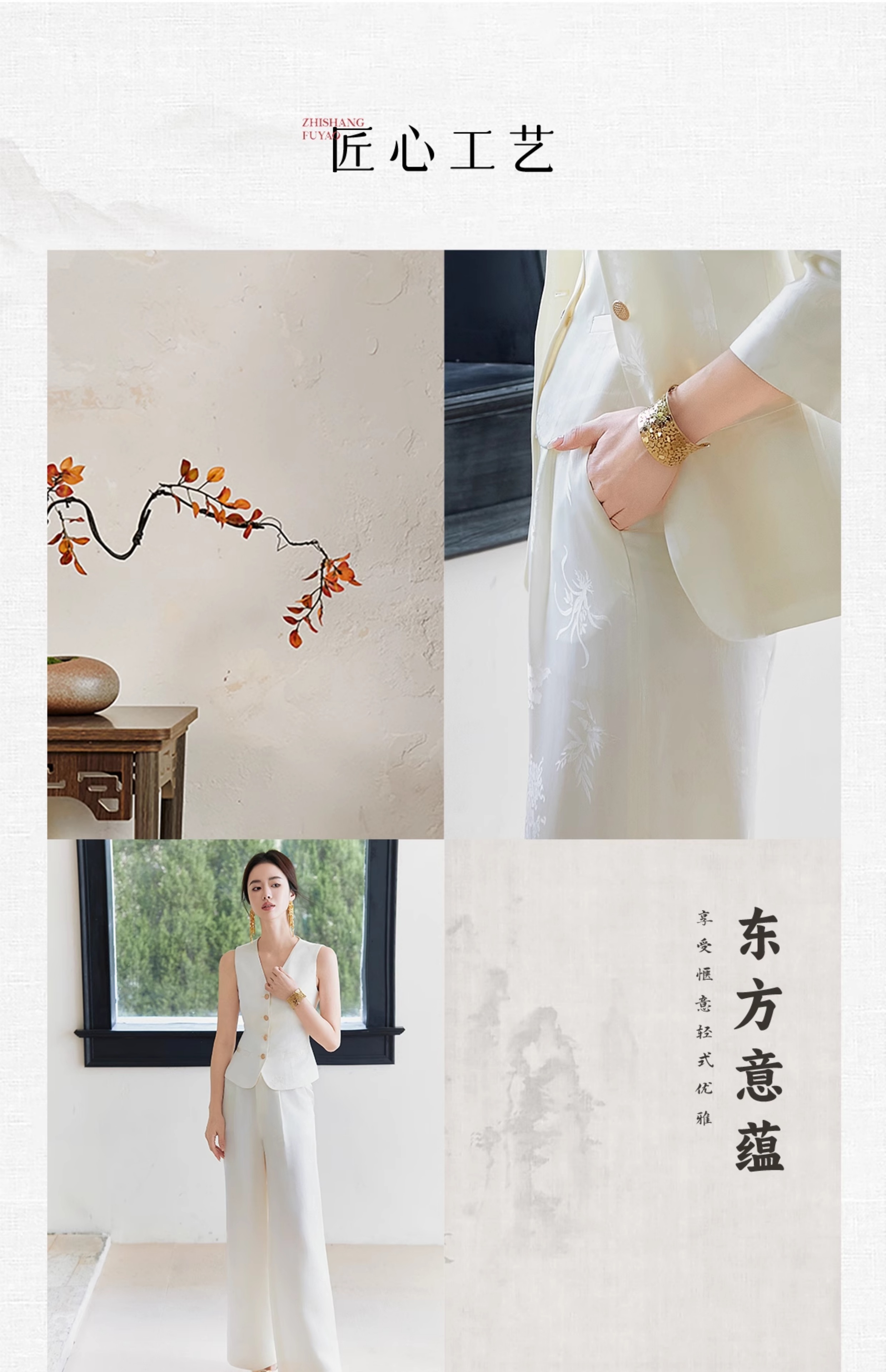 FUYAO扶摇 醋酸提花直筒裤女2025春新款国风休闲裤杏色垂感阔腿裤