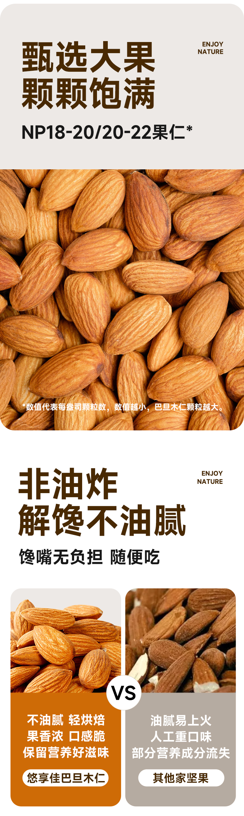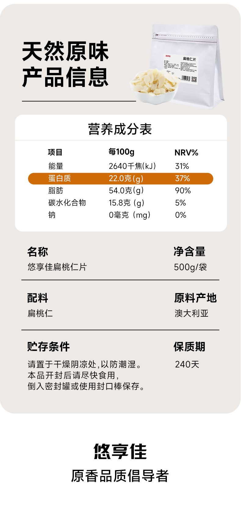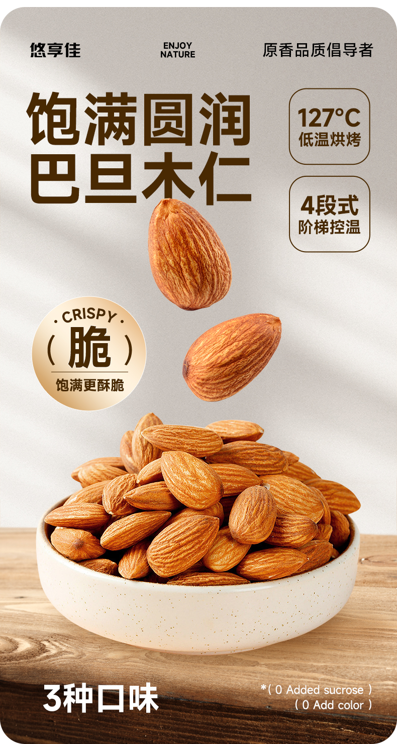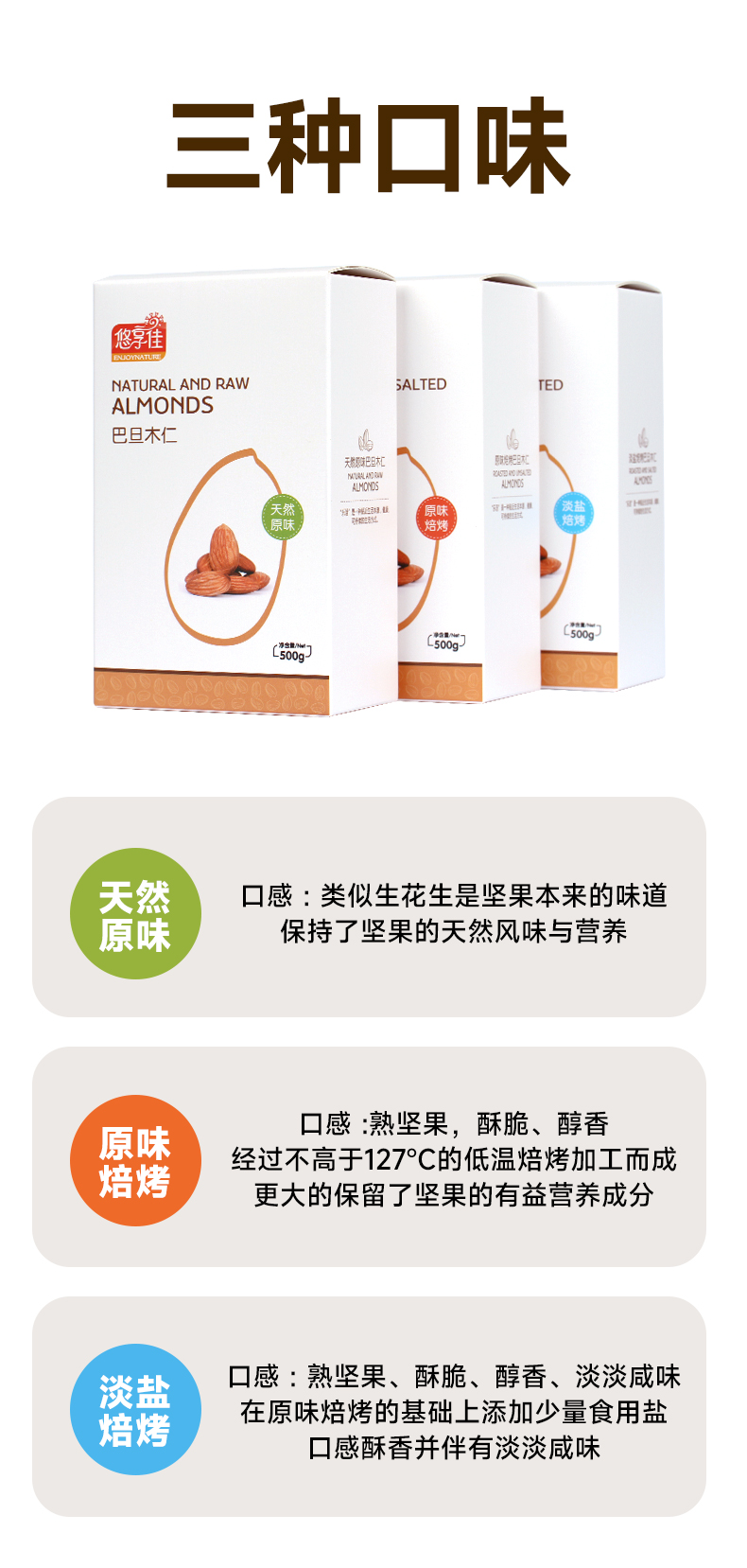 【悠享佳】悠享佳巴旦木仁500g原味盐焗孕妇零食扁桃仁烘焙烤炒货生熟干坚果