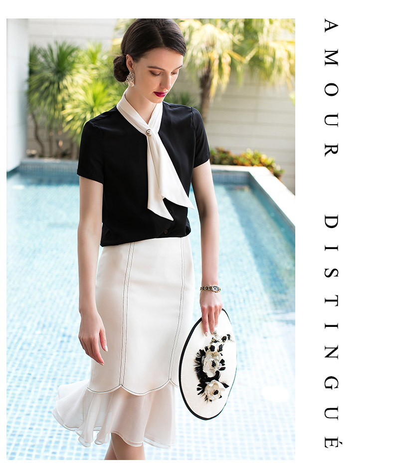 AD高端OL女装优雅气质系带衬衫半裙套装时尚白领职业装夏季新款