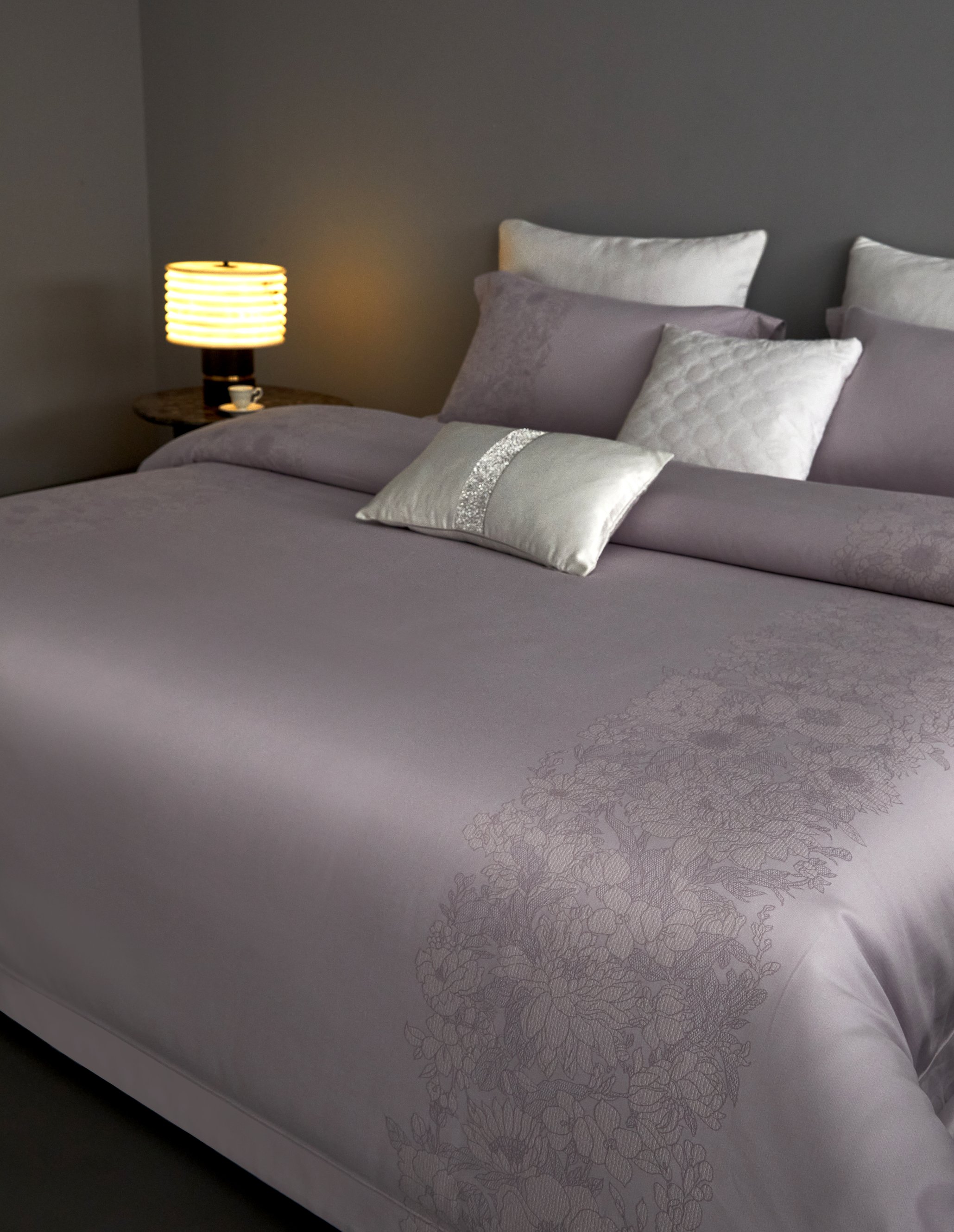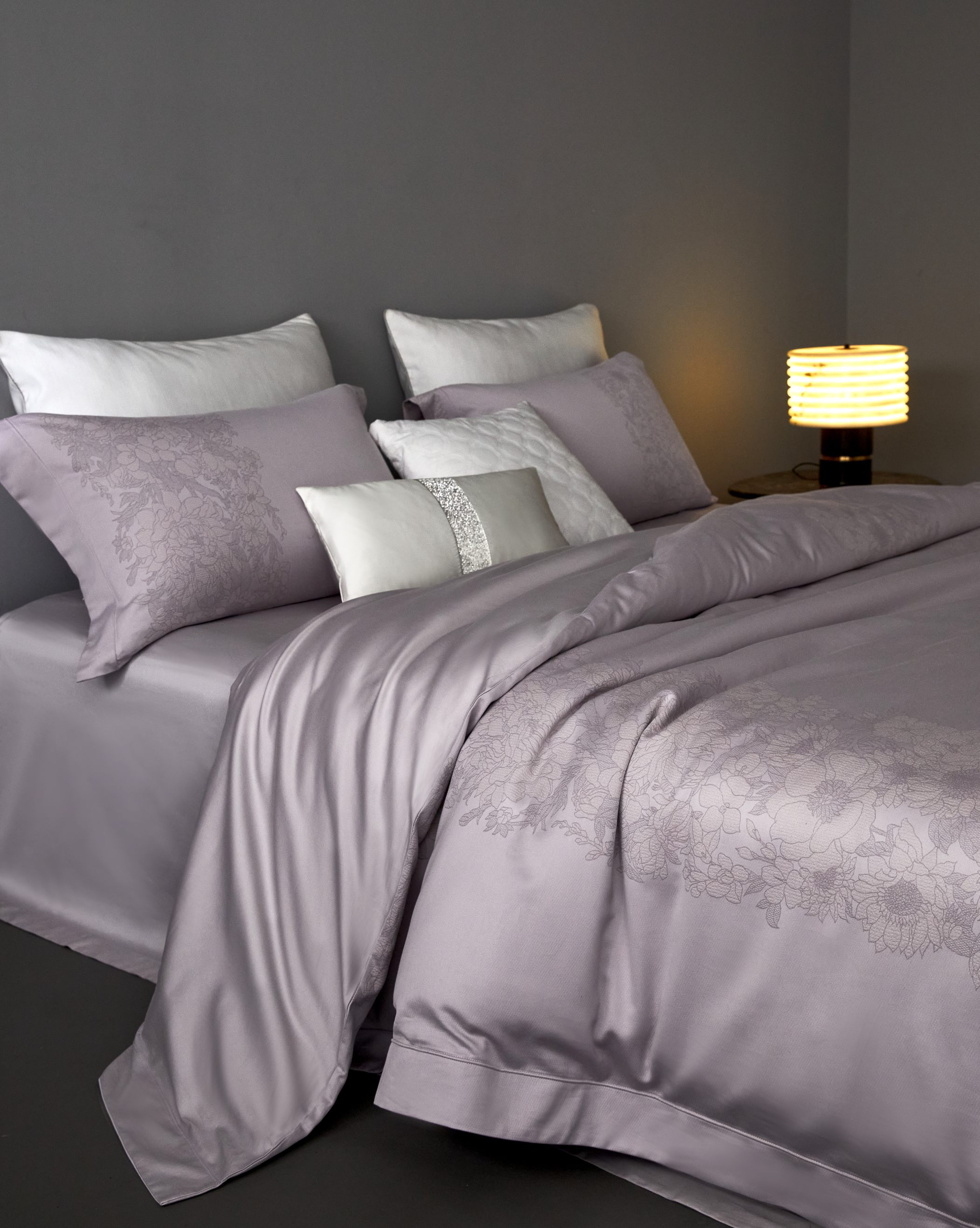 # 紫烟花缕 #棉麻床品 #春夏床品 #暗纹提花 #卧室好物