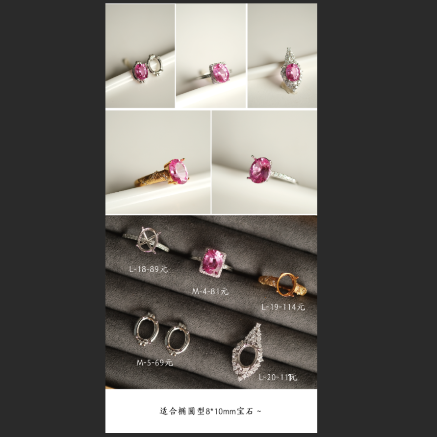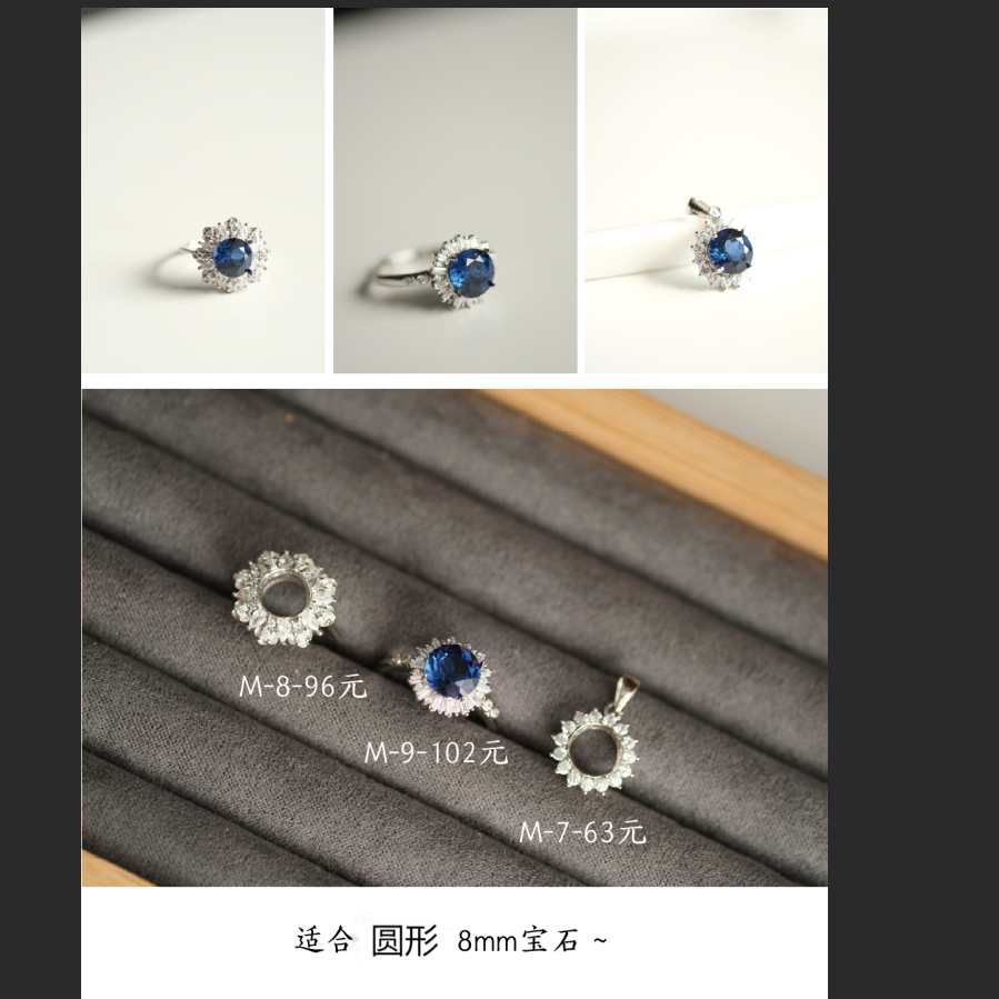米马饰物 925银戒指托/挂坠托 (注:价格不包含宝石,仅为银托)
