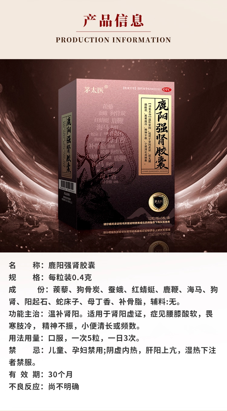 茅太医鹿阳强肾胶囊正品官方旗舰店温补肾阳腰膝酸软畏寒肢冷3盒装