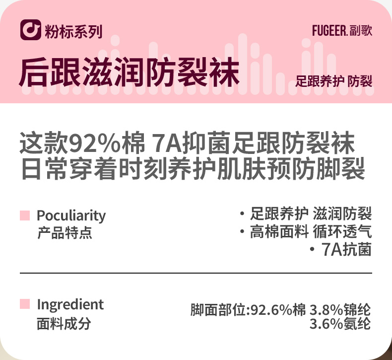 副歌7A抗菌高棉足跟防裂润肤袜男/女袜 3双装1242/2312