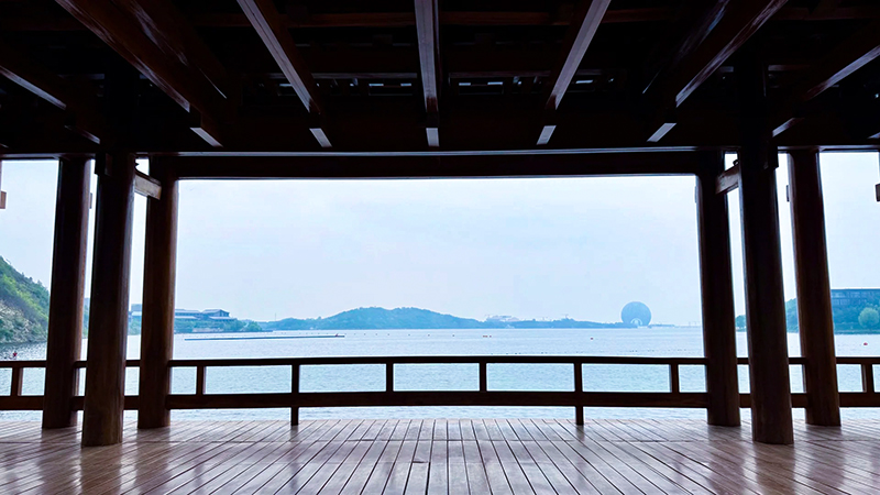 雁栖湖西山栈道是一条依山而建的观景步道。沿途设有多处观景平台,可360度俯瞰雁栖湖全景,远眺APEC会址建筑群和连绵群山。步道采用木质栈道与石阶相结合的设计,坡度平缓,适合各年龄段游客休闲徒步。
