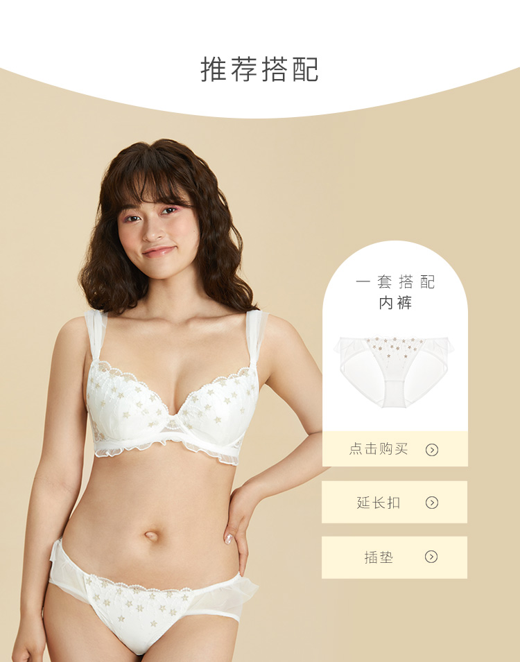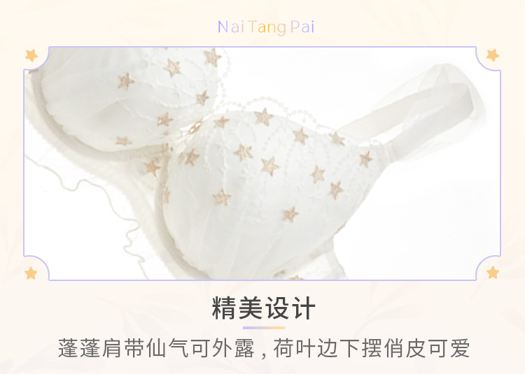 奶糖派大杯文胸星芒分胸型荷叶边刺绣蕾丝提拉胸部稳定承托内衣女