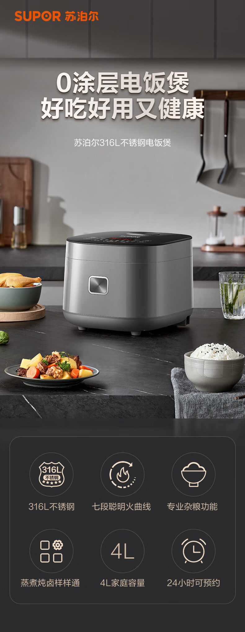 SUPOR/苏泊尔 316L不锈钢内胆无涂层电饭煲SF40FC9001