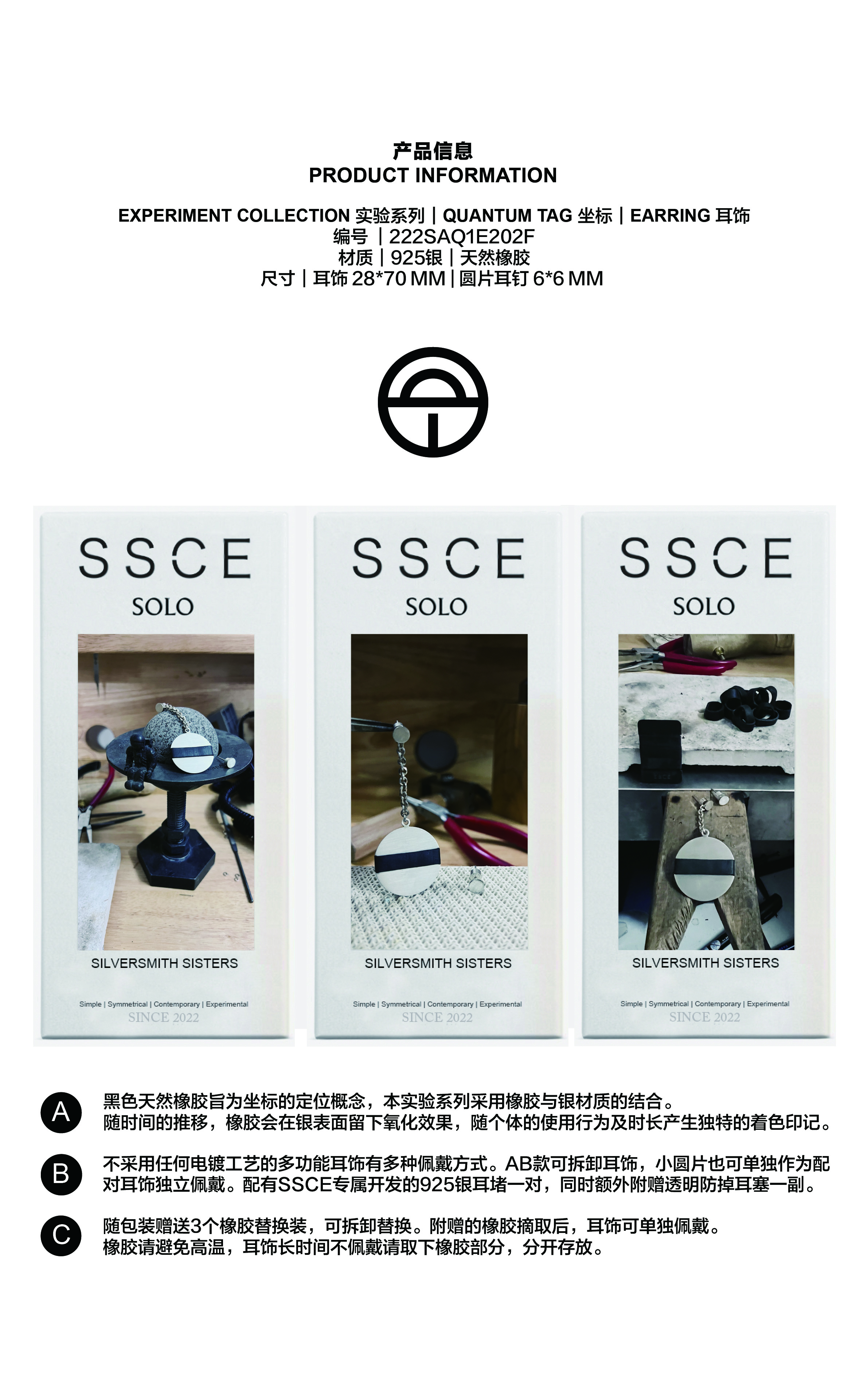 SSCE|222SAQ1E202F Earrings坐标不对称耳环28x70mm 6x6mm【QUANTUM TAG】