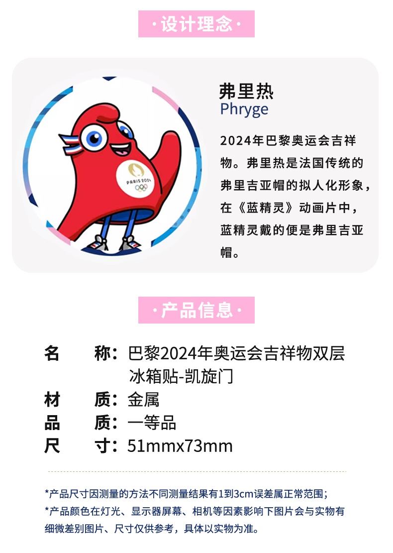 【正版授权】2024年巴黎奥运会·凯旋门吉祥物冰箱贴