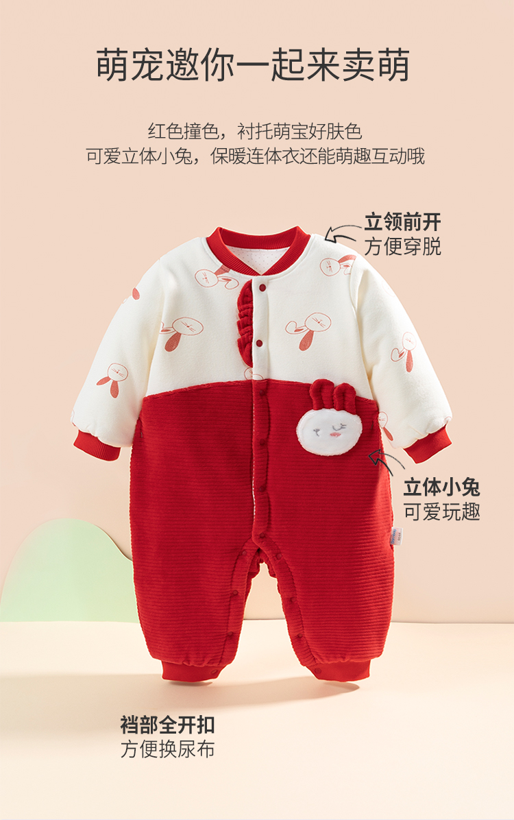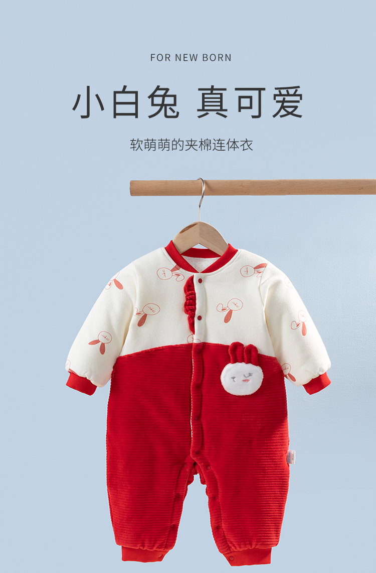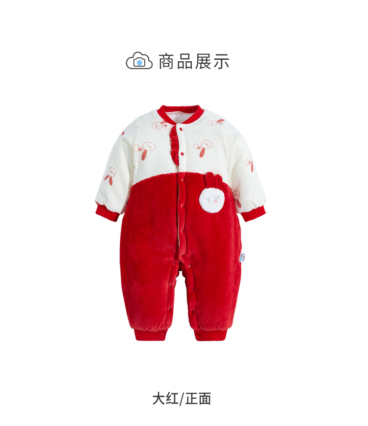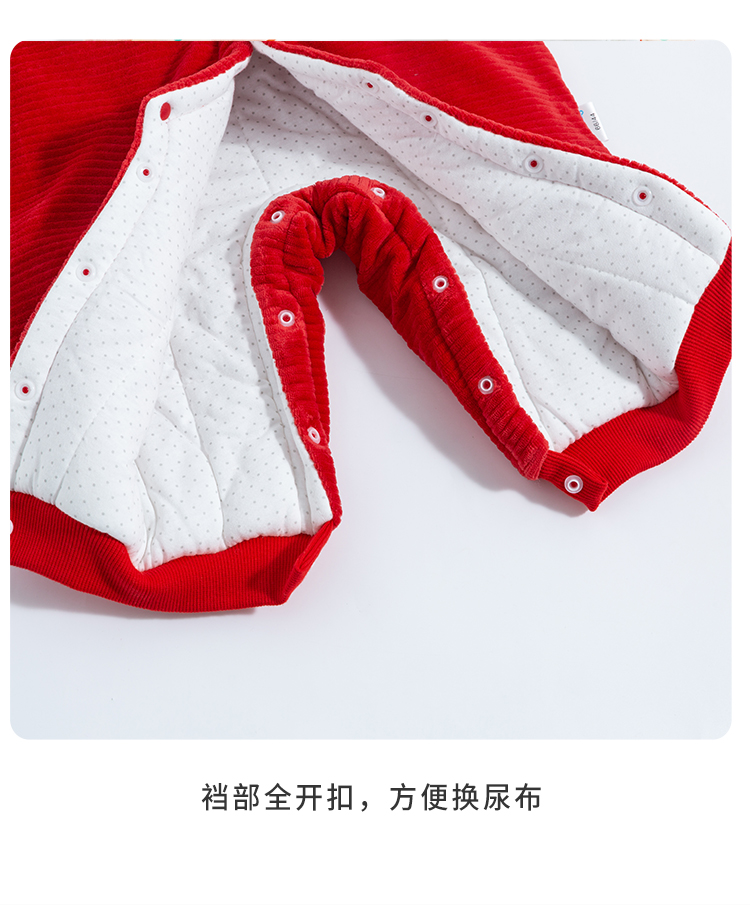贝贝怡新生婴儿儿衣服秋冬保暖夹棉连体衣宝宝和尚服加厚哈衣爬服224L580