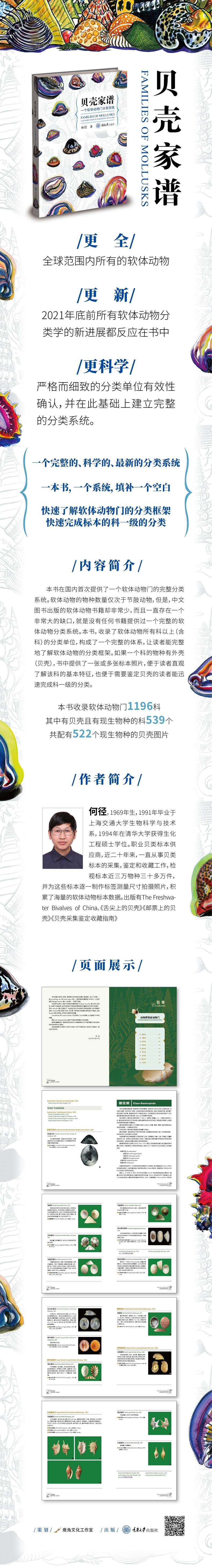 《贝壳家谱》收录了软体动物门所有的科及科以上的分类单元,按分类体系编排,构成一个系统。这个系统有如下三个特点: