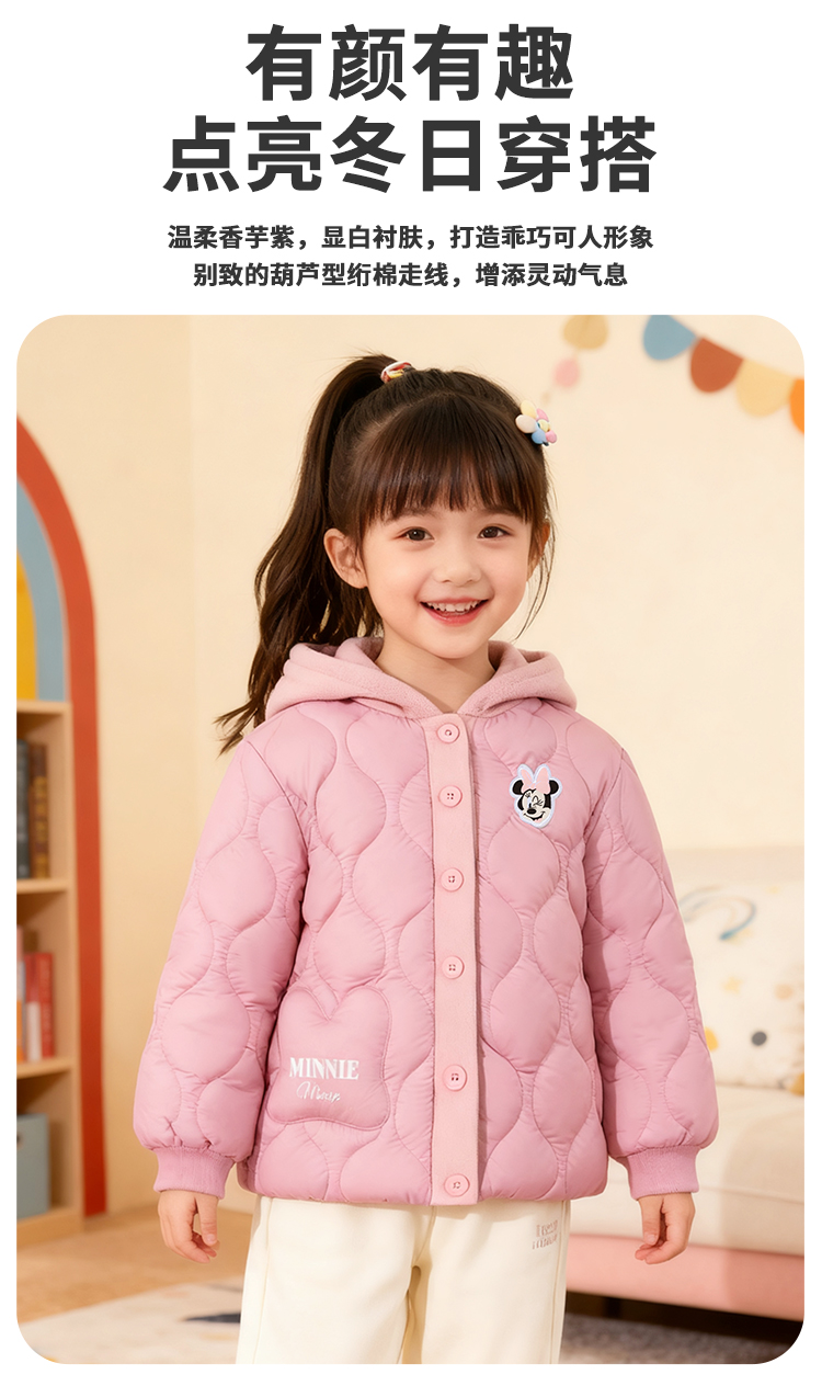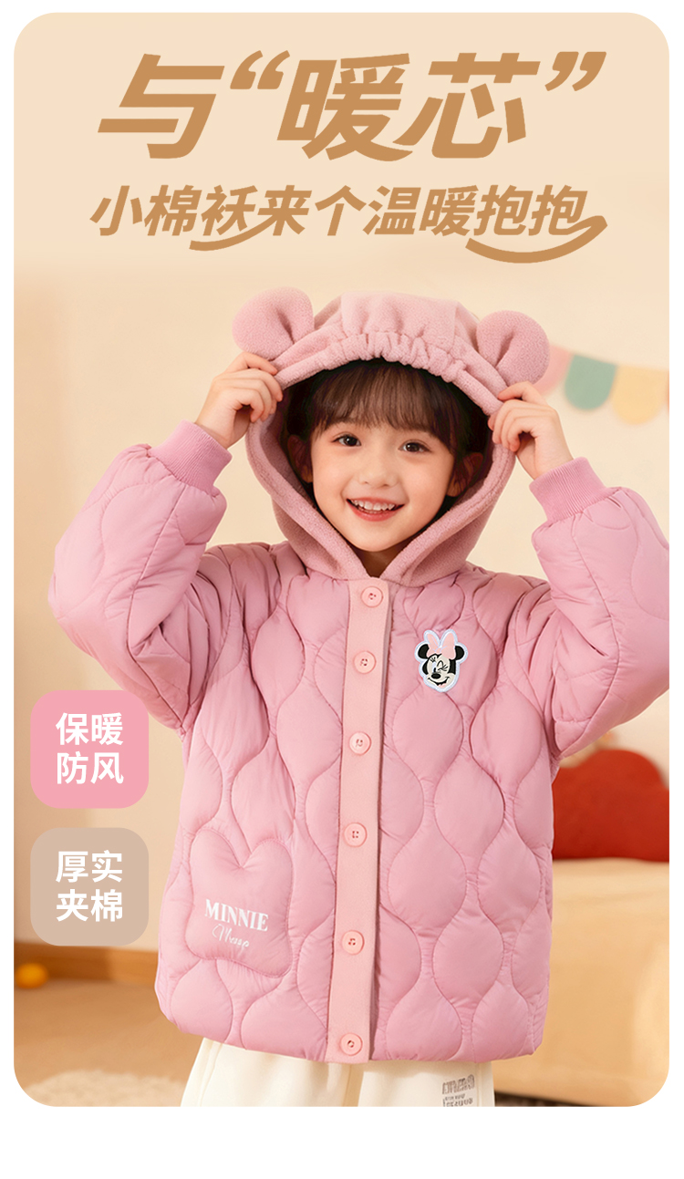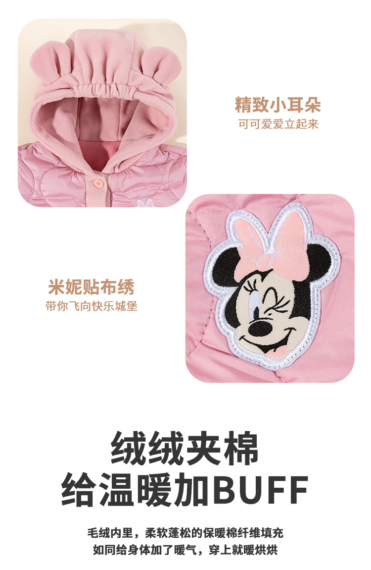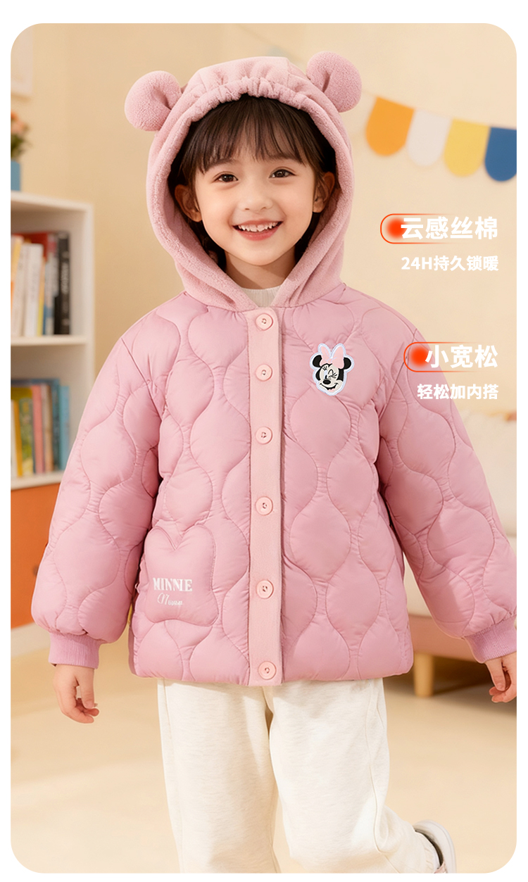迪士尼【夹棉保暖】冬新款男女童夹棉外套户外连帽防风棉服运动休闲棉衣ZD4ES016