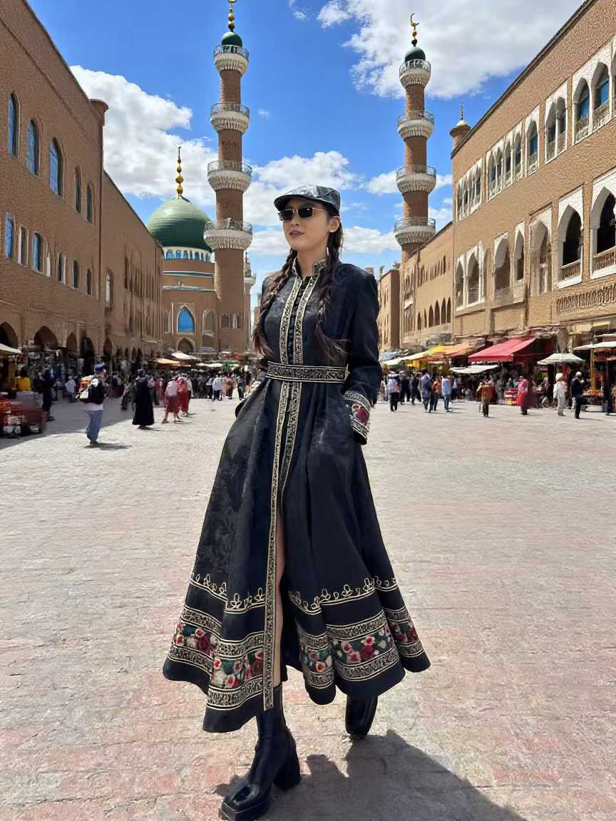 SZ3C52_漆黑色_大衣_春秋_领收腰刺绣长款_高级女装_BERNIEELEN 伯妮斯茵