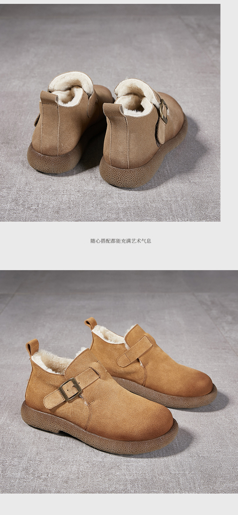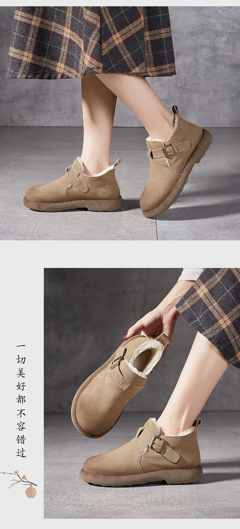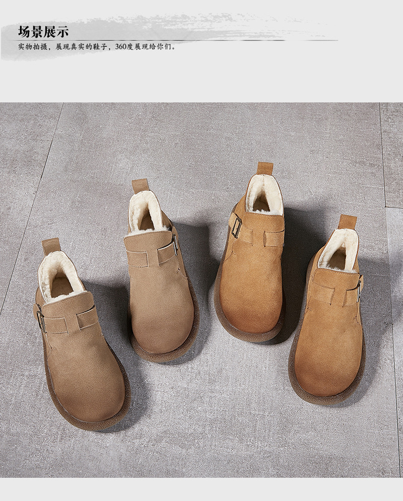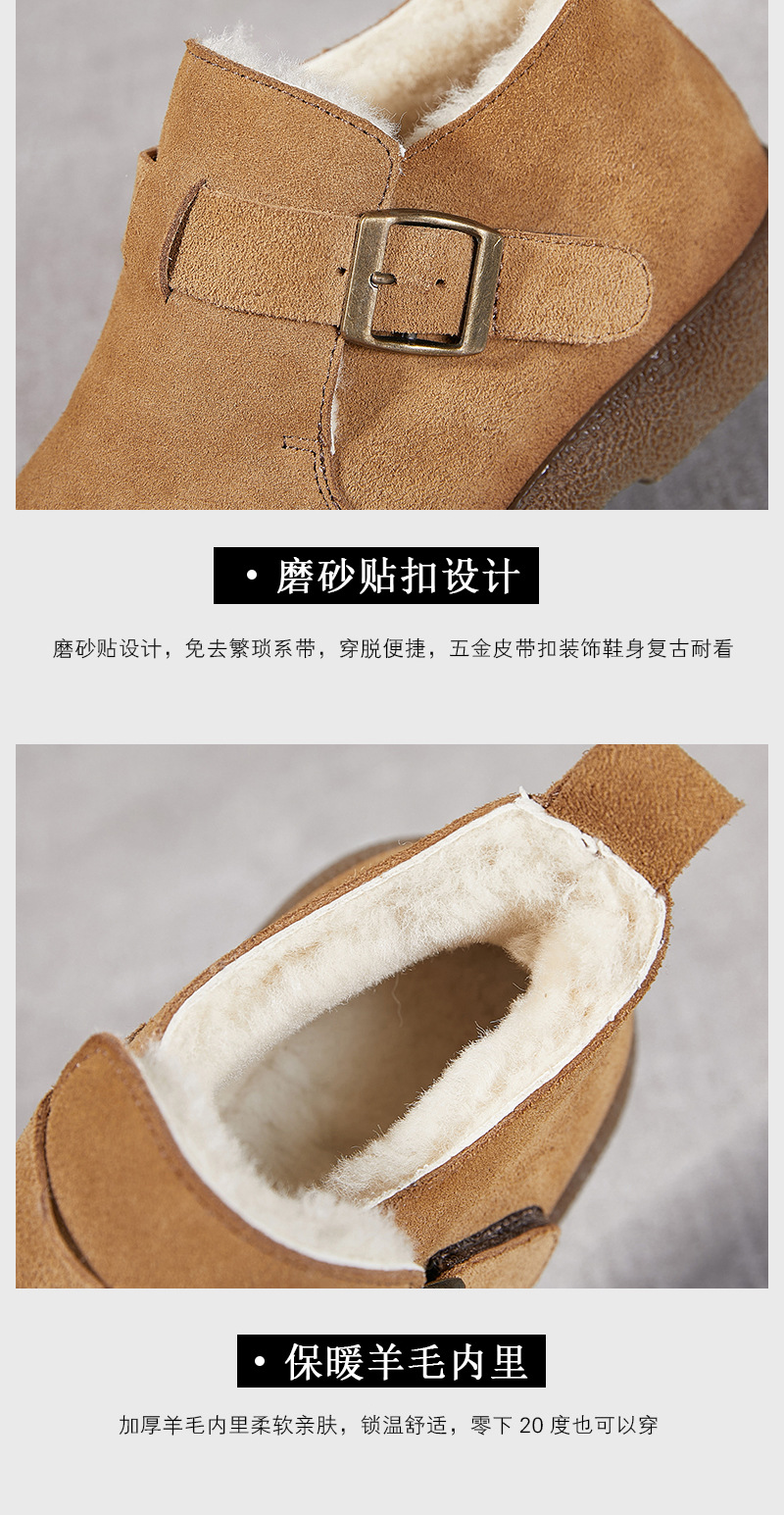 【冬装新品】2024真皮厚底雪地靴女款冬季新款源头搭扣羊羔毛防滑保暖棉靴!