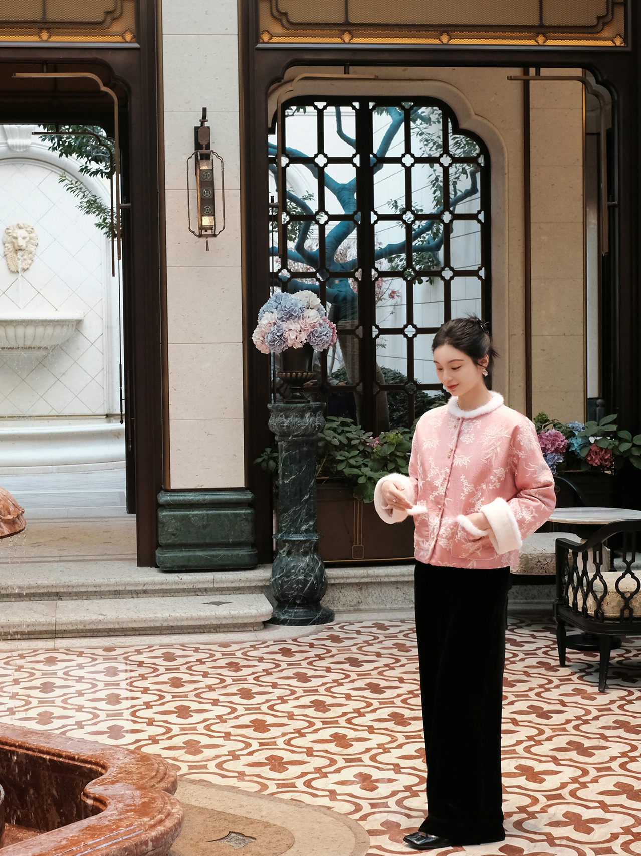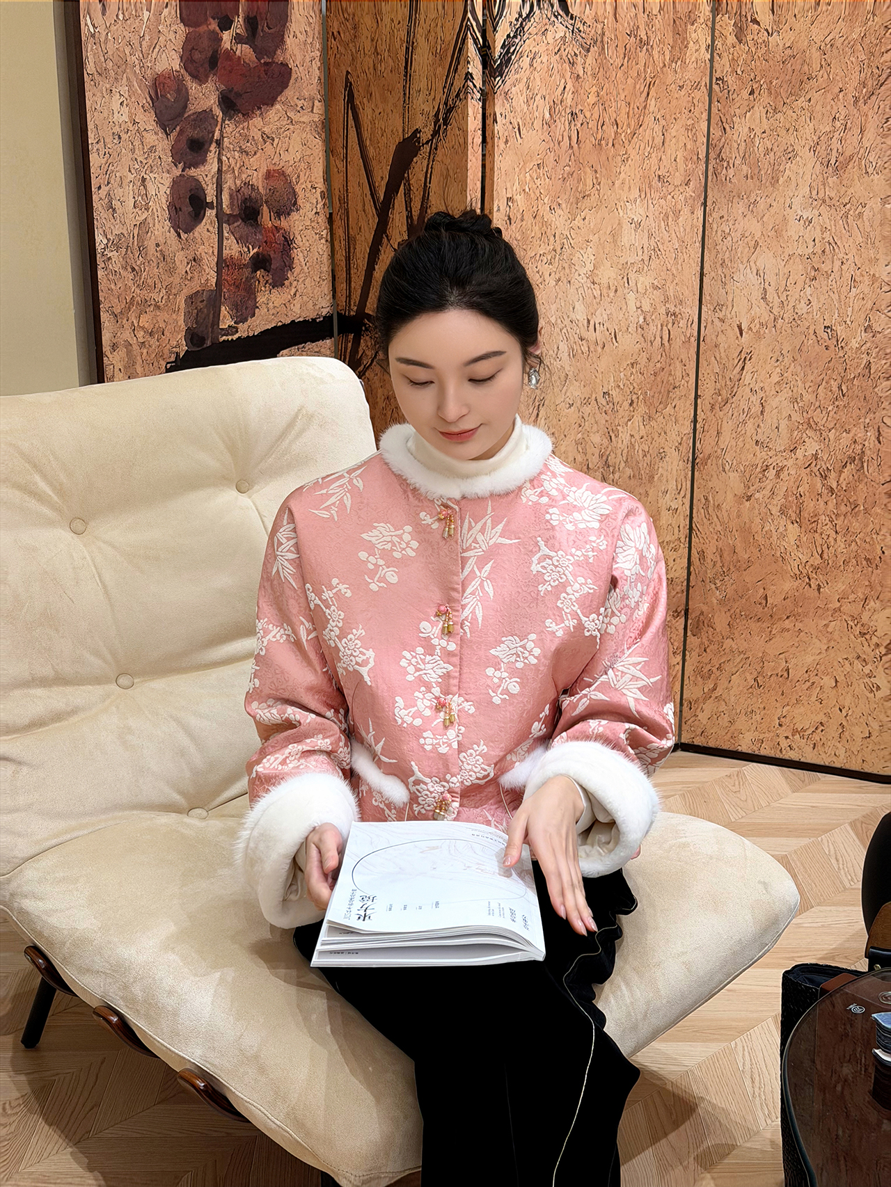 盛唐婧 | 轻奢新中式提花绒拼水貂对襟夹棉外套